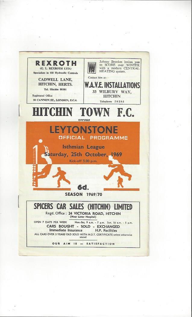 1969/70 Hitchin Town v Leytonstone Football Programme