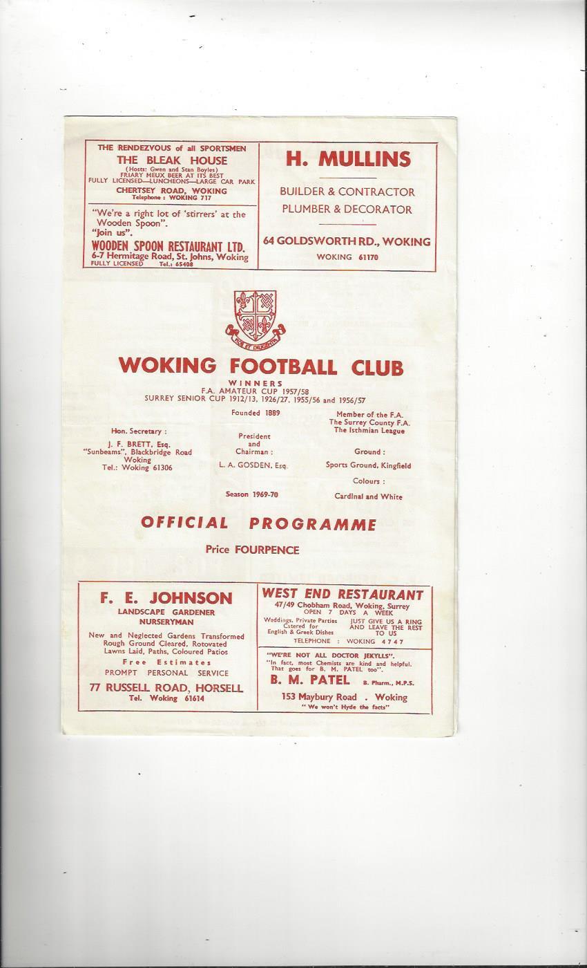 1969/70 Woking v Kingstonian Football Programme