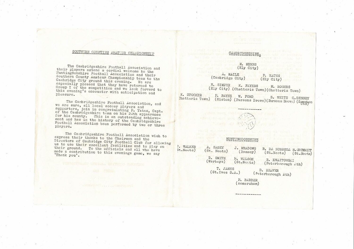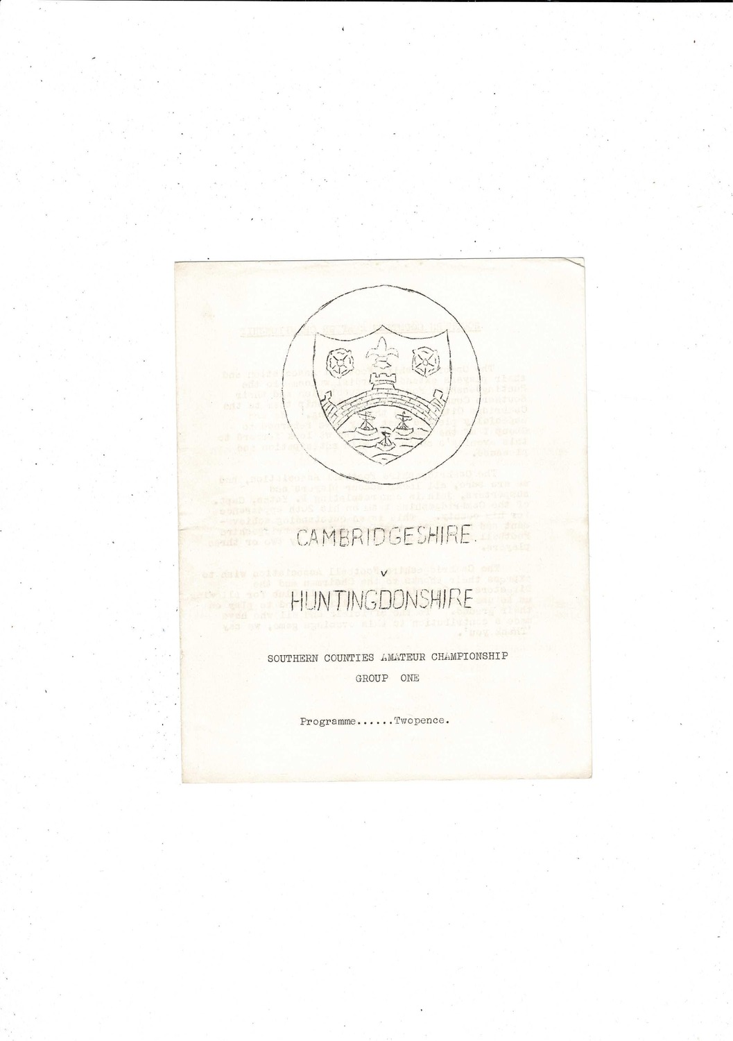 Cambridgeshire v Huntingdonshire Football Programme. No date