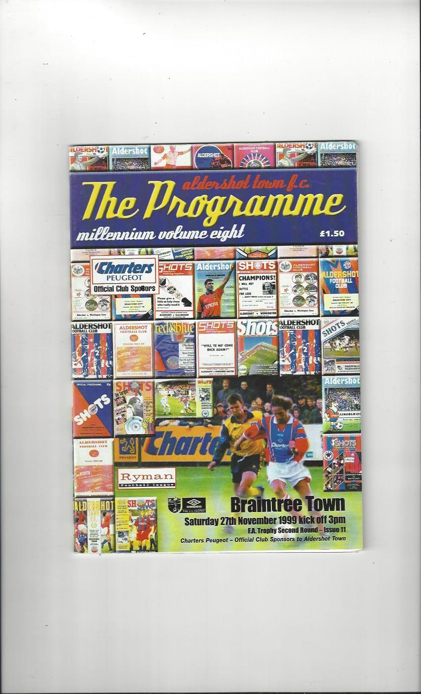 Aldershot Town v Braintree Town FA Trophy Football Programme 1999/00
