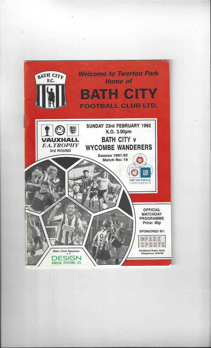 Bath City v Wycombe Wanderers FA Trophy Football Programme 1991/92