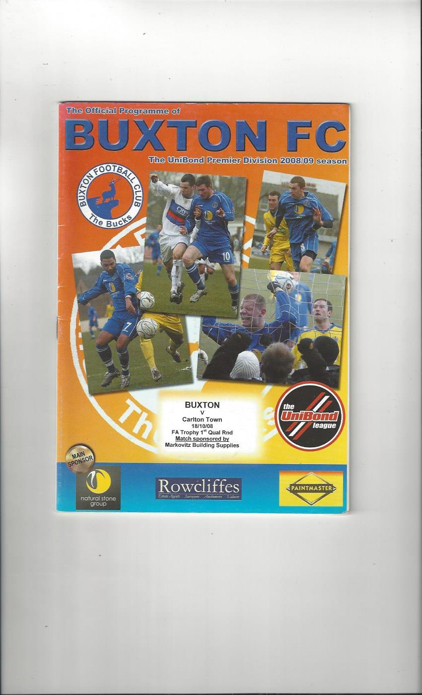 Buxton v Carlton Town FA Trophy Football Programme 2008/09