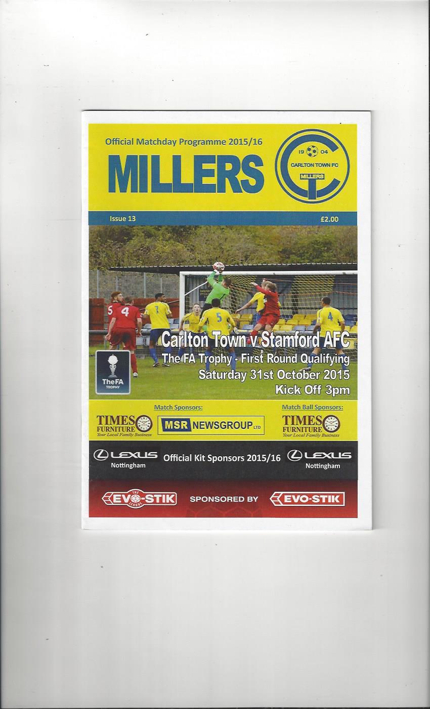 Carlton Town v Stamford FA Trophy Football Programme 2015/16