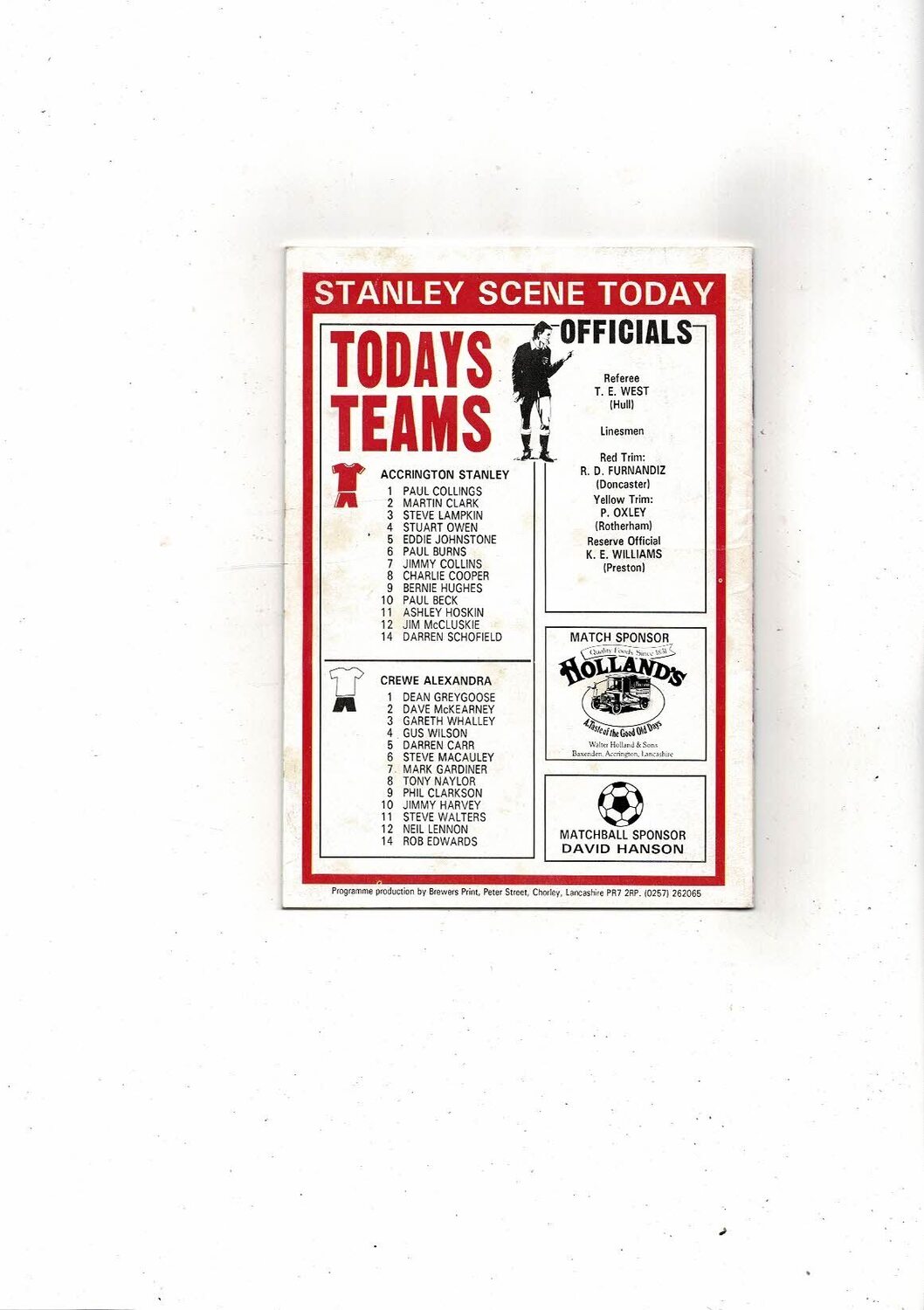 Accrington Stanley v Crewe Alexandra FA Cup Football Programme 1992/93