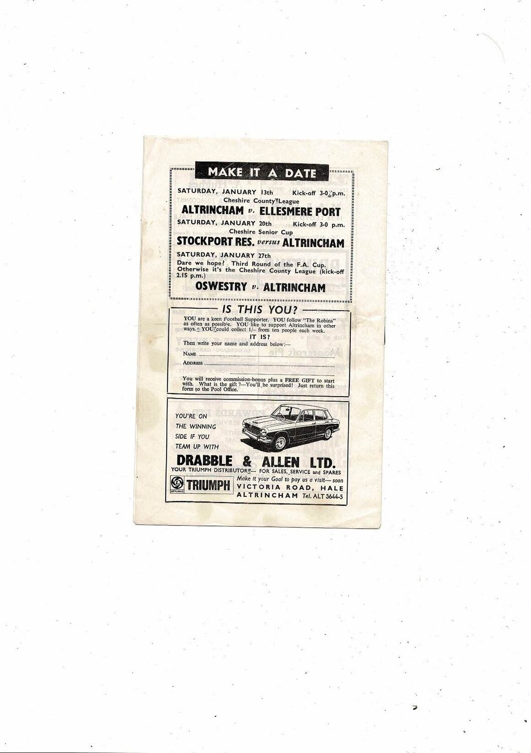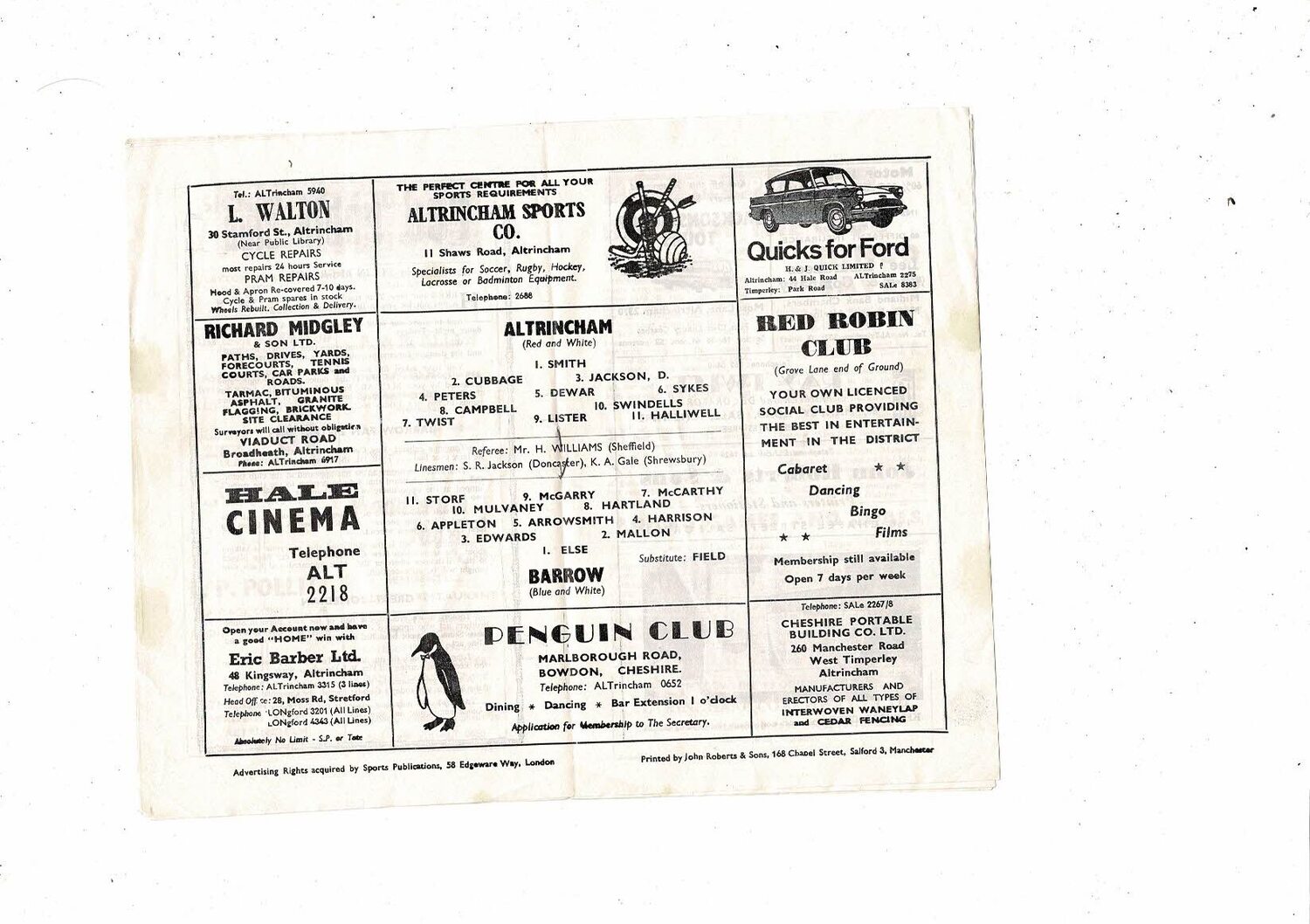 Altrincham v Barrow FA Cup Football Programme 1967/68