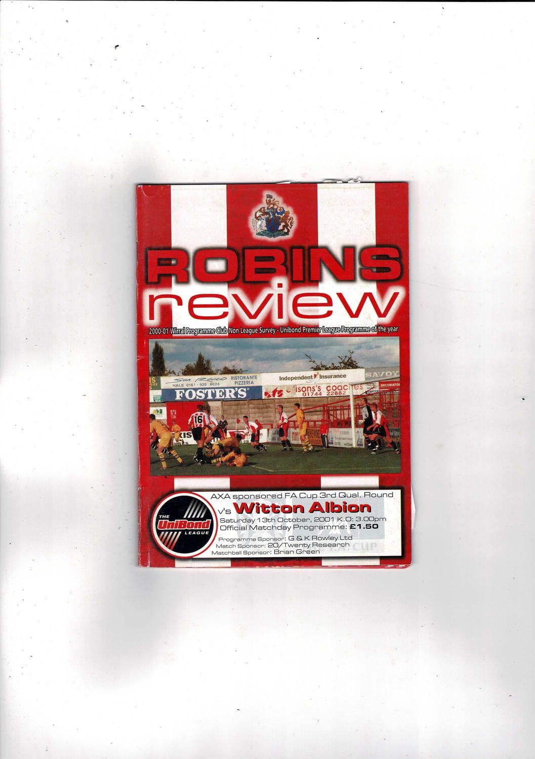 Altrincham v Witton Albion FA Cup Football Programme 2001/02