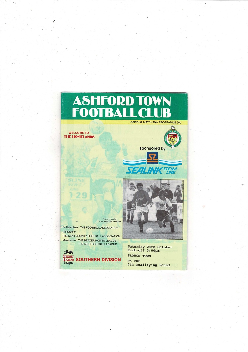 Ashford Town (Kent) v Slough Town FA Cup Football Programme 1992/93