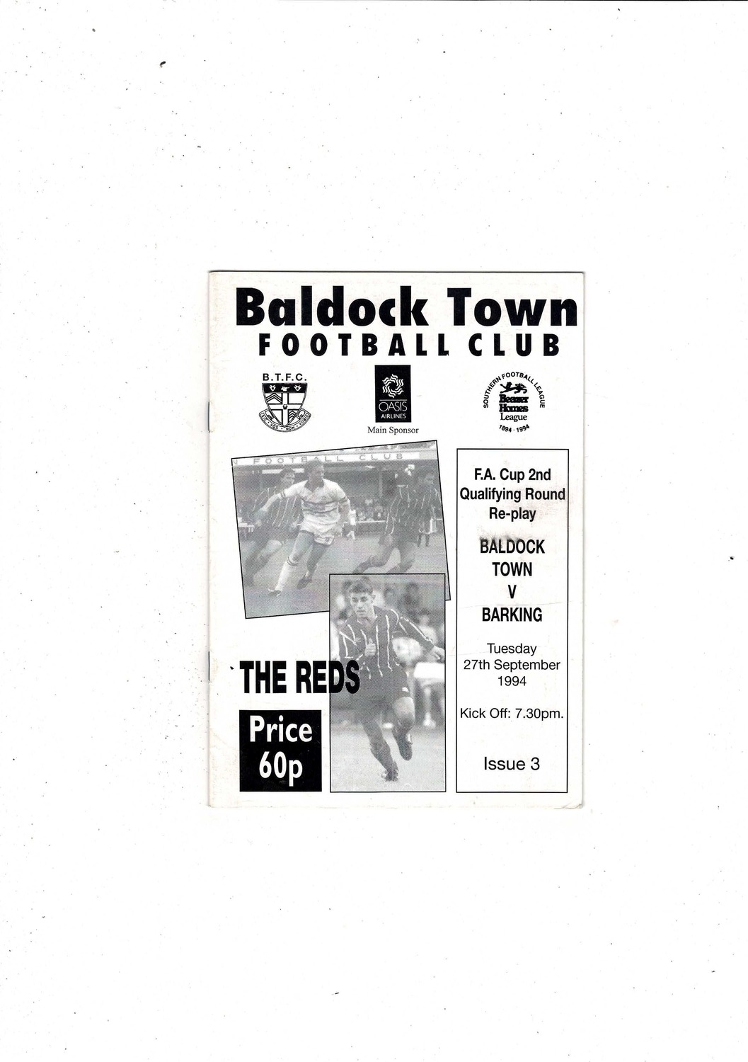 Baldock Town v Barking FA Cup Football Programme 1994/95