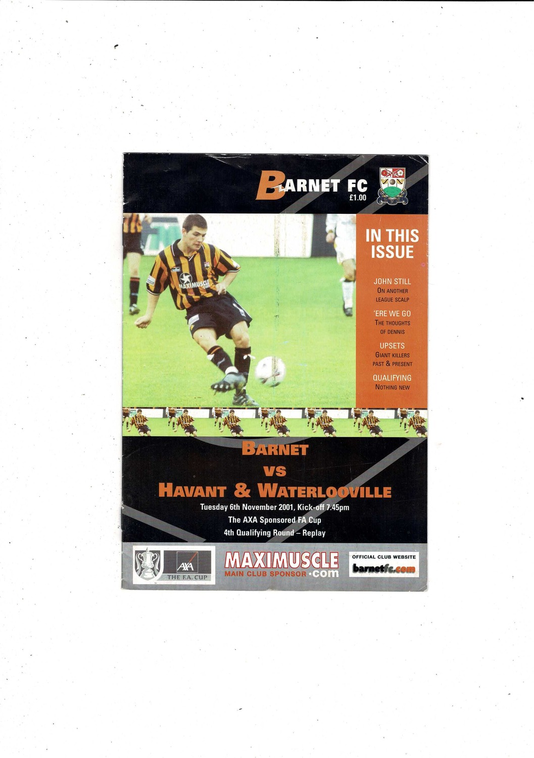 Barnet v Havant & Waterlooville FA Cup Replay Football Programme 2001/02