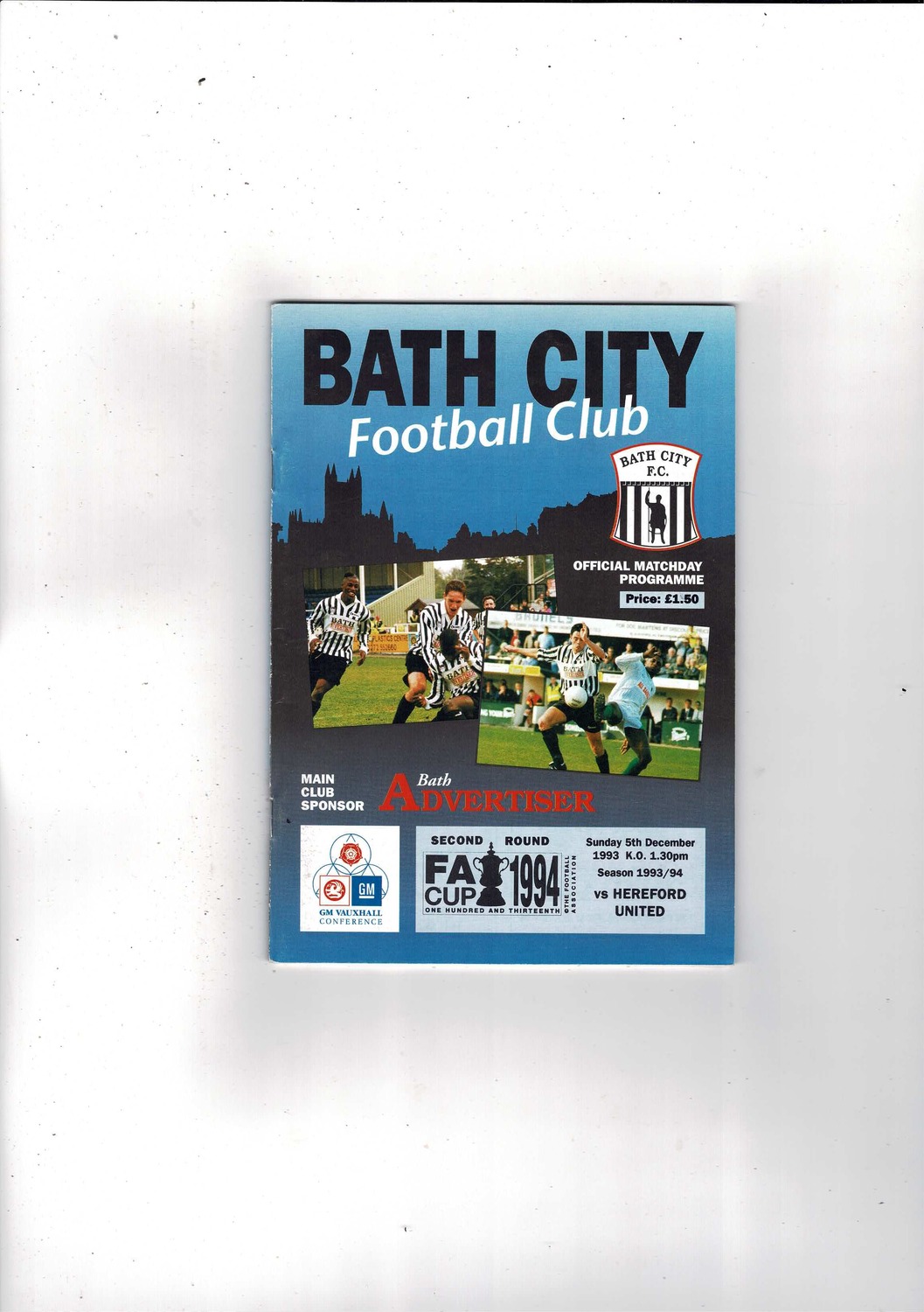 Bath City v Hereford United FA Cup Football Programme + Press cutting 1993/94