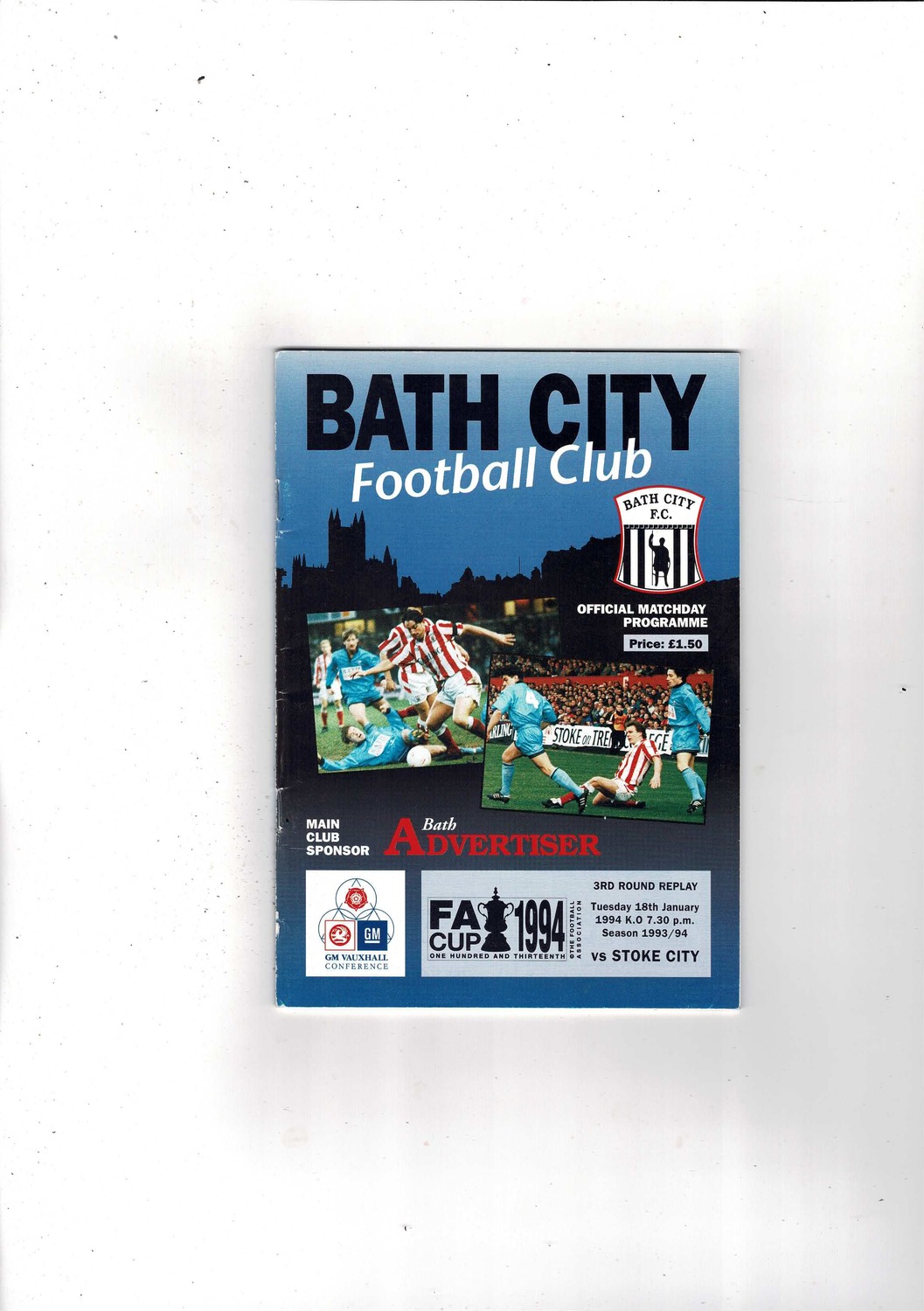 Bath City v Stoke City FA Cup 3rd Round Replay Football Programme 1993/94