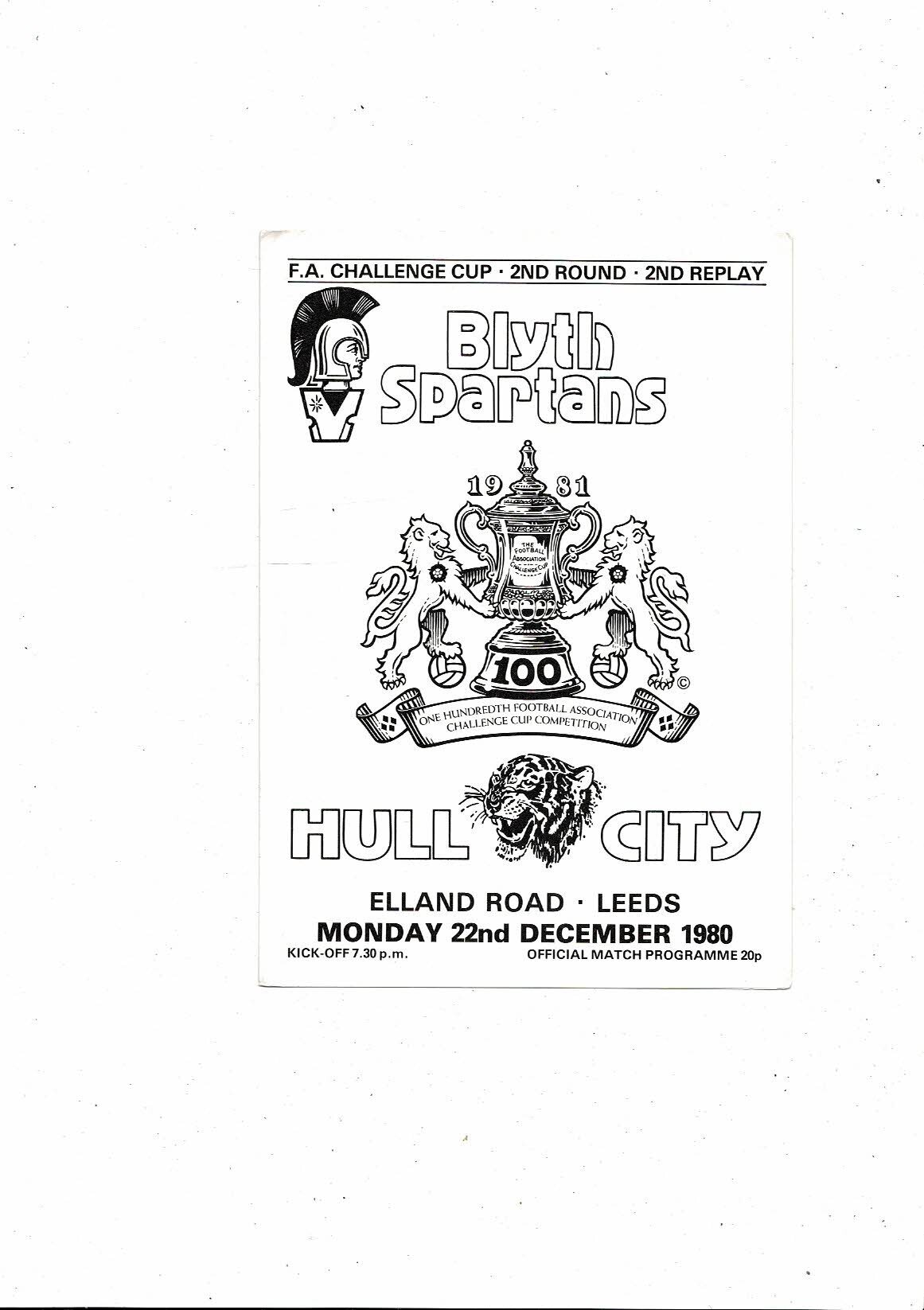 Blyth Spartans v Hull City FA Cup 2nd Replay Football Programme 1980/81 @ Leeds