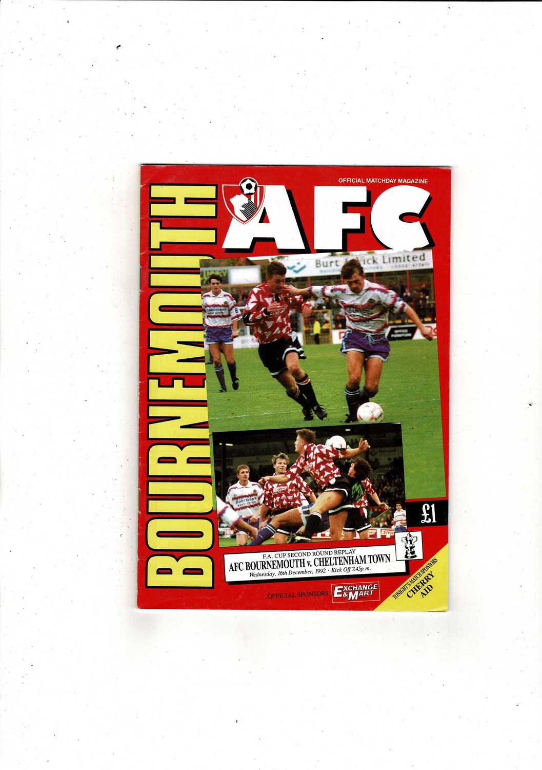 Bournemouth v Cheltenham Town FA Cup Replay Football Programme 1992/93