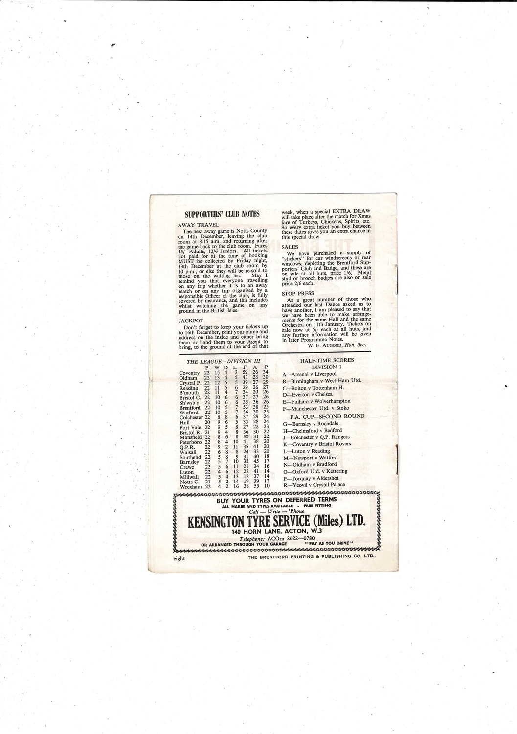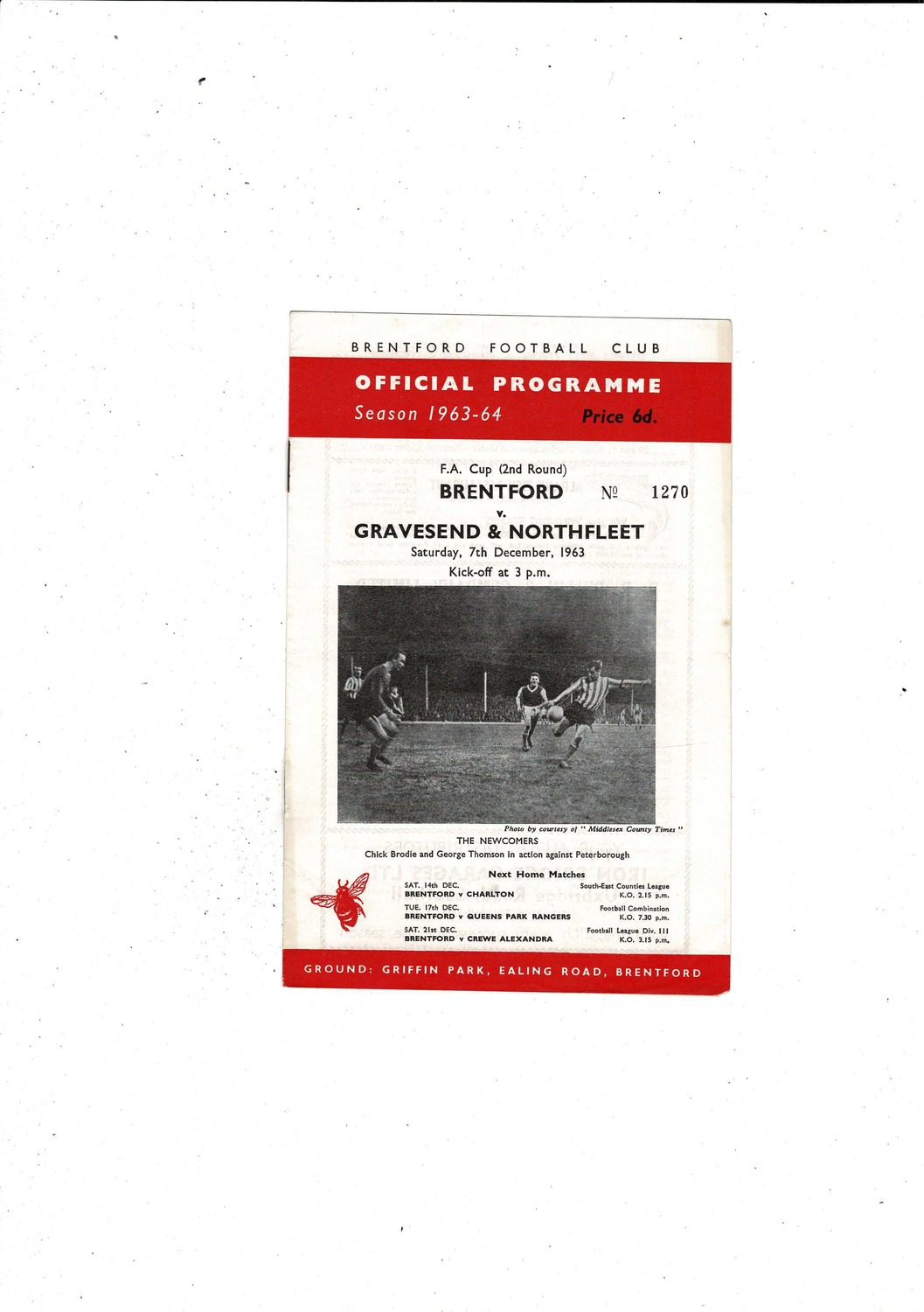 Brentford v Gravesend & Northfleet FA Cup Football Programme 1963/64