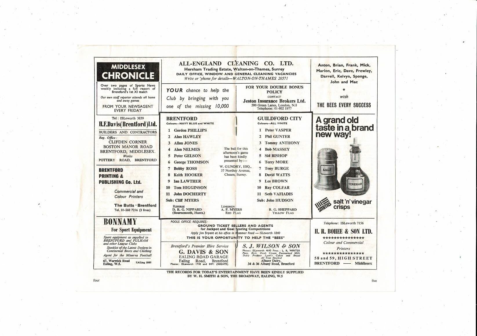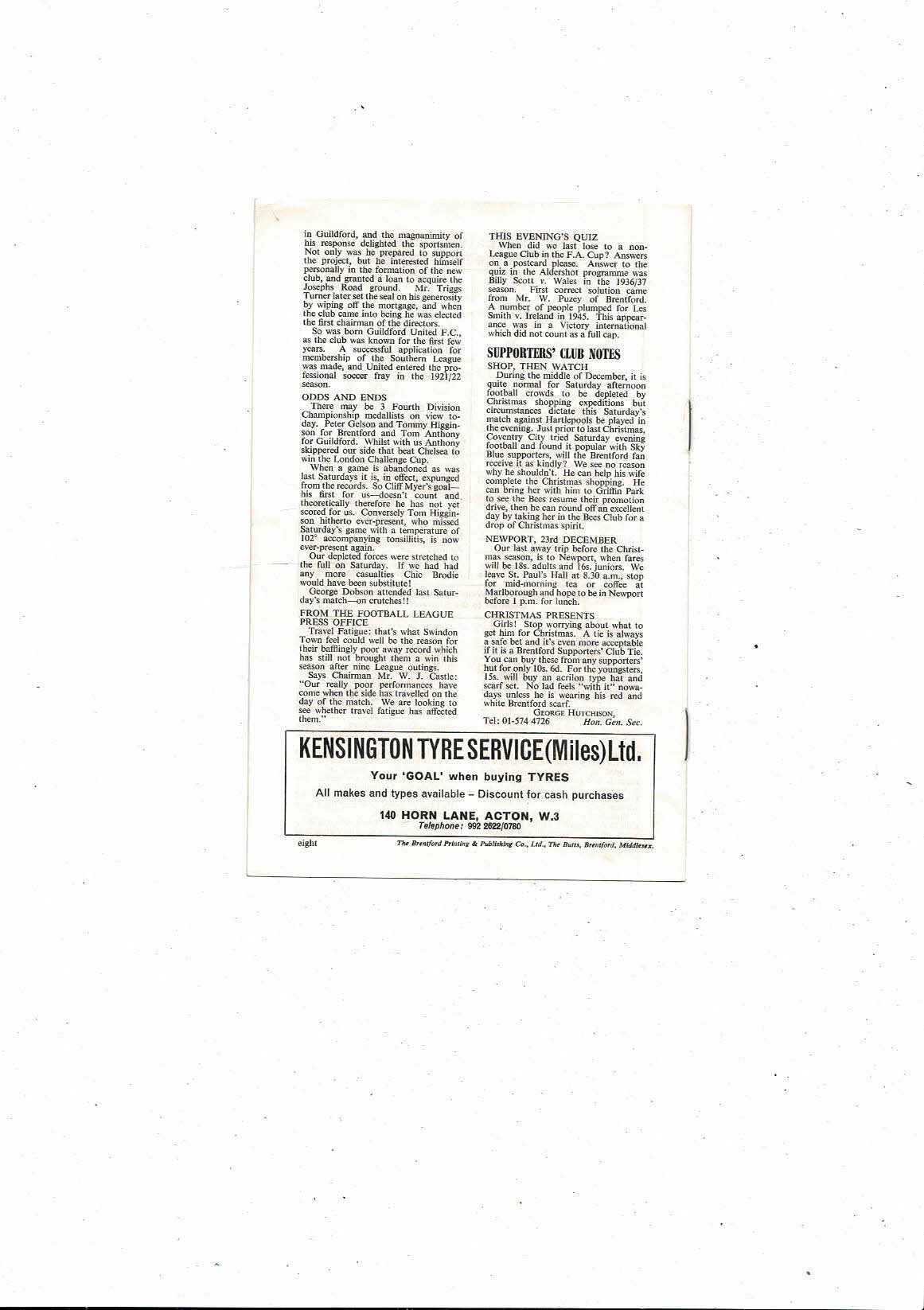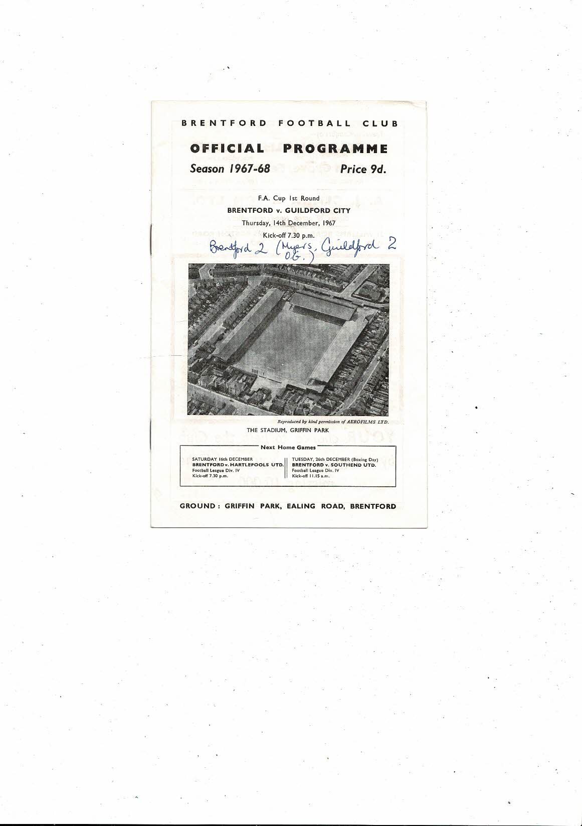 Brentford v Guildford City FA Cup Football Programme 1967/68 14th December - Rearranged fixture