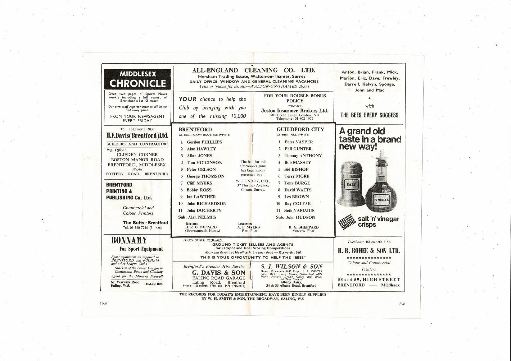 Brentford v Guildford City FA Cup Football Programme 1967/68 9th December - Match Abandonned