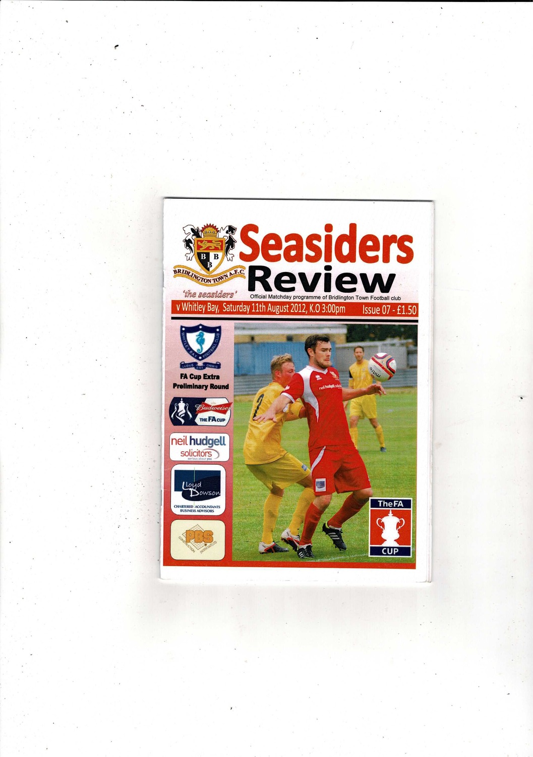 Bridlington Town v Whitley Bay FA Cup Football Programme 2012/13