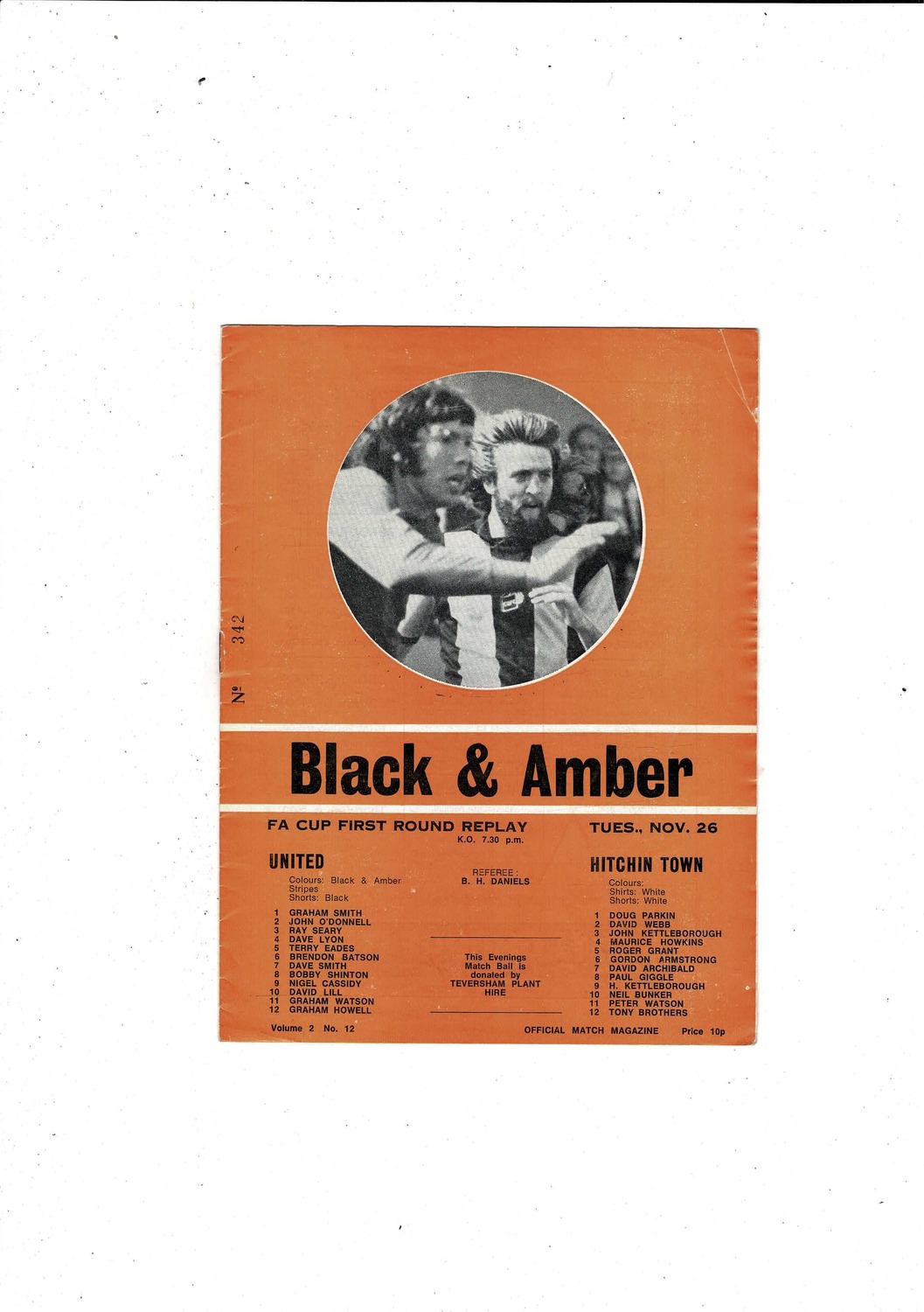 Cambridge United v Hitchin Town FA Cup Replay Football Programme 1974/75