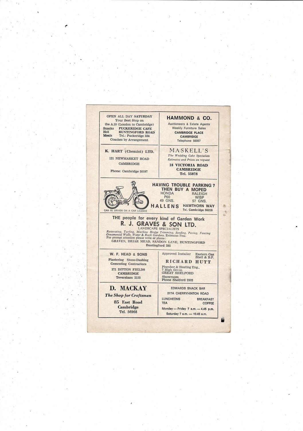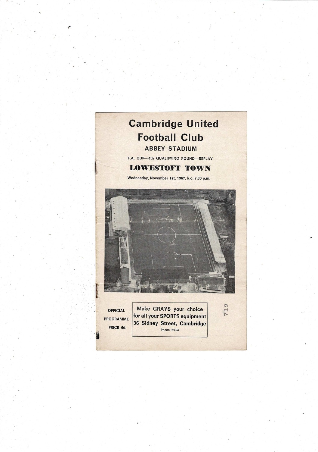 Cambridge United v Lowestoft Town FA Cup Replay Football Programme 1967/68