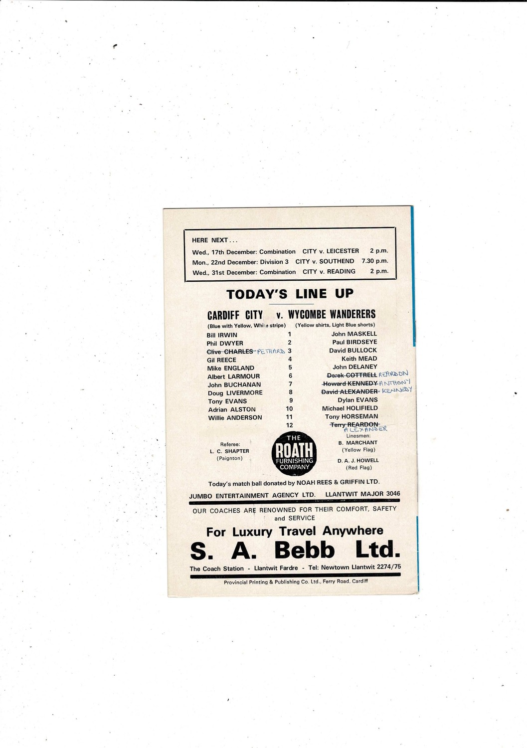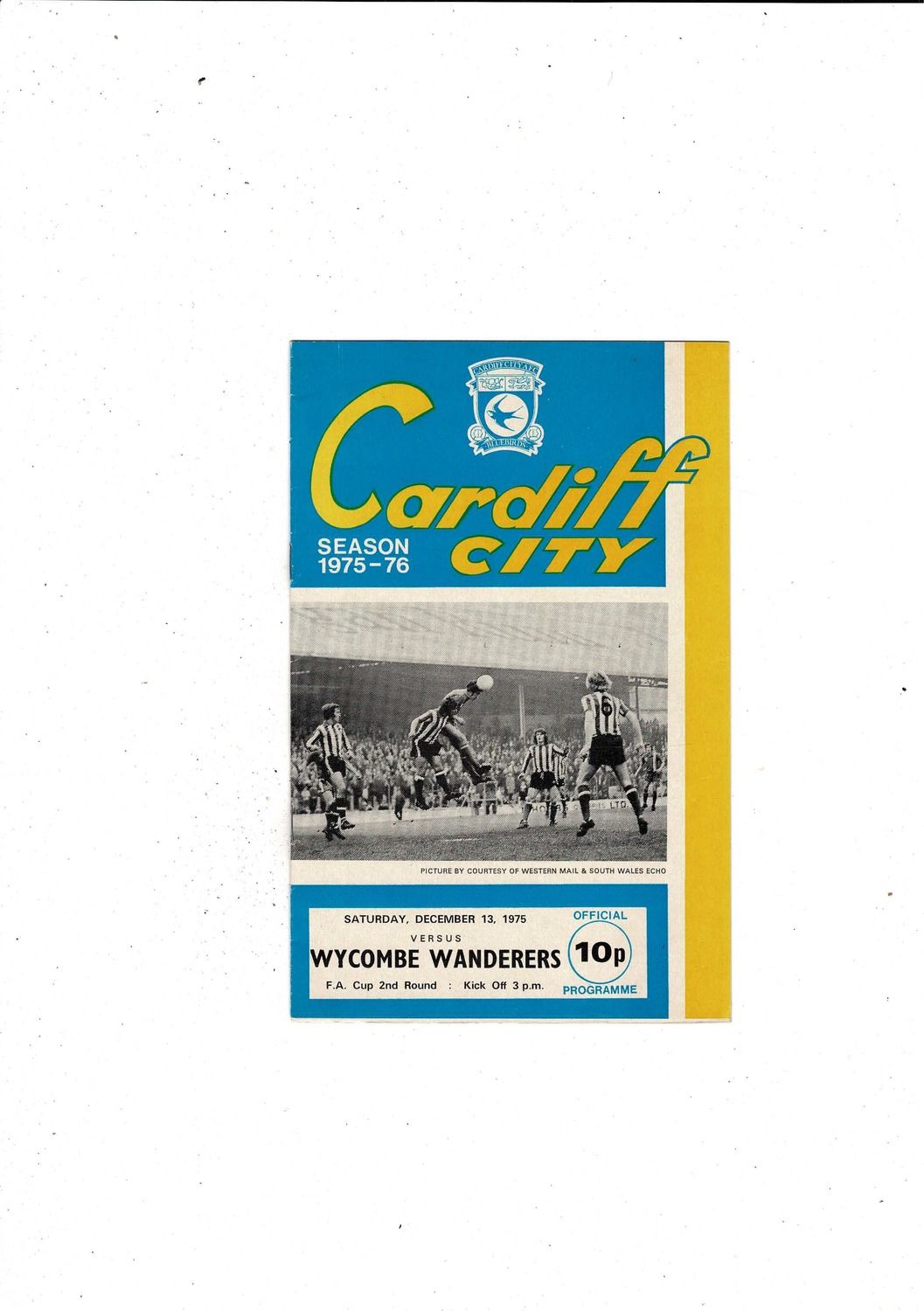 Cardiff City v Wycombe Wanderers FA Cup Football Programme 1975/76