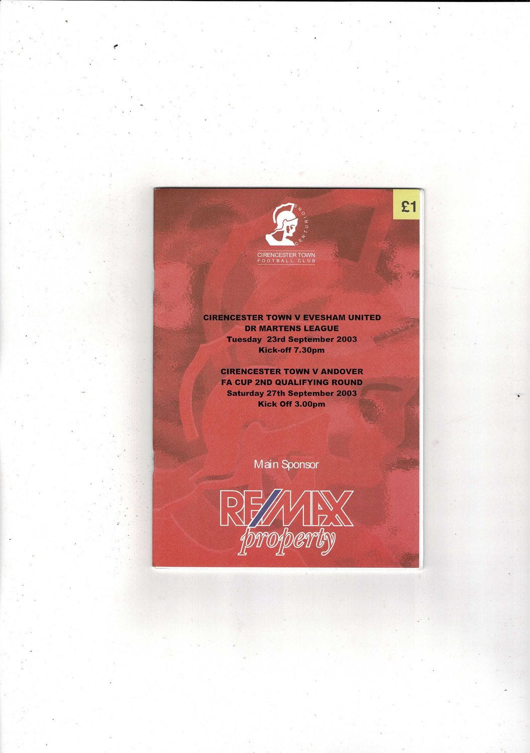 Cirencester Town v Andover FA Cup Football Programme + Press cutting 2003/04