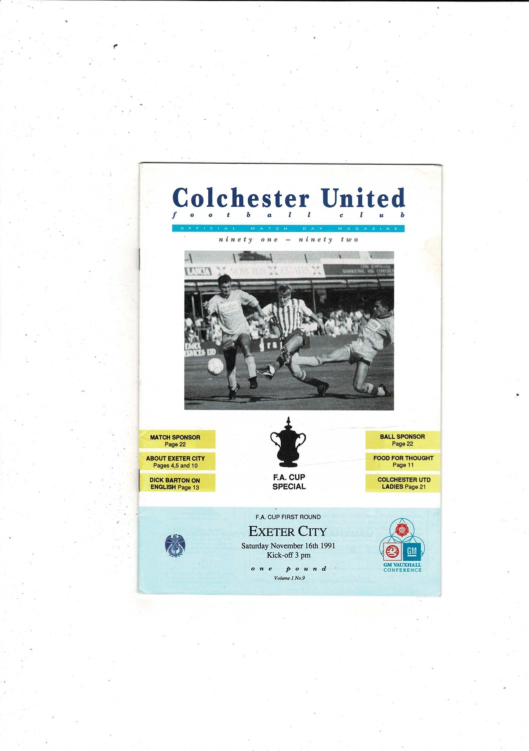 Colchester United v Exeter City FA Cup Football Programme 1991/92