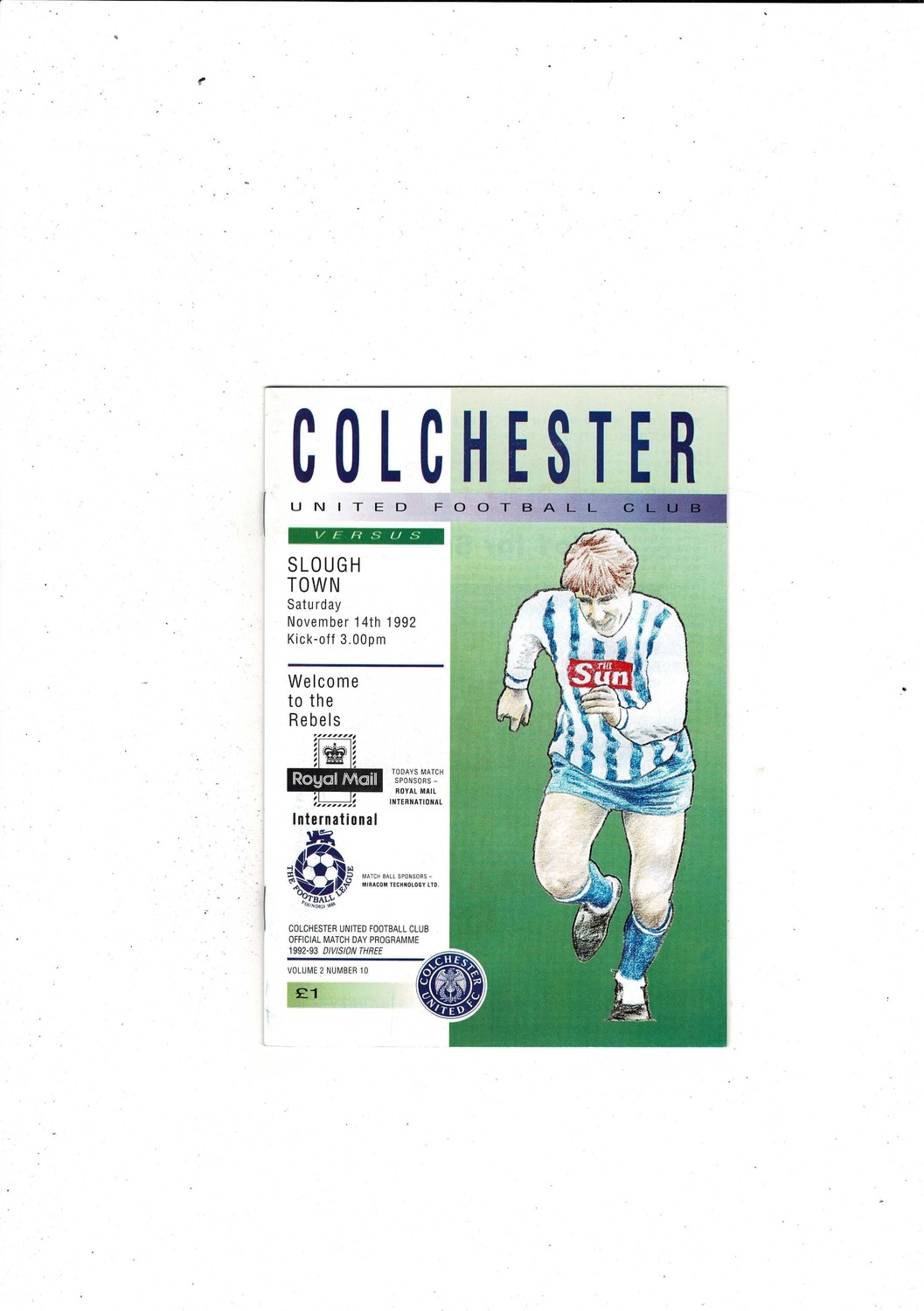 Colchester United v Slough Town FA Cup Football Programme 1992/93