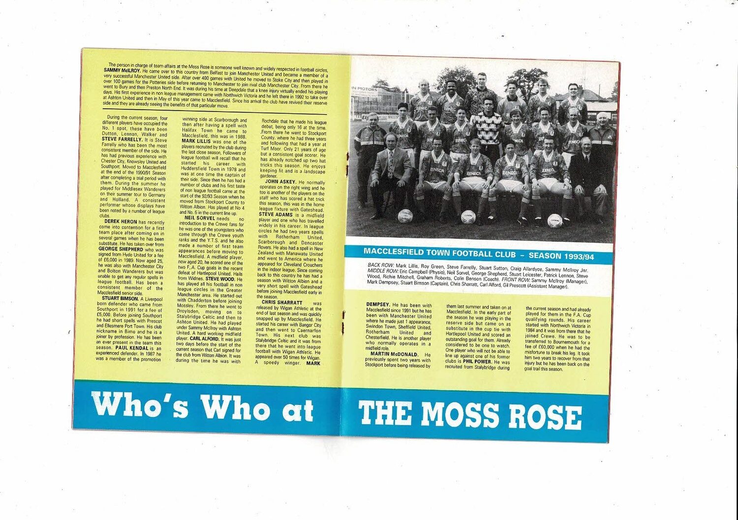 Crewe Alexandra v Macclesfield Town FA Cup Football Programme 1993/94