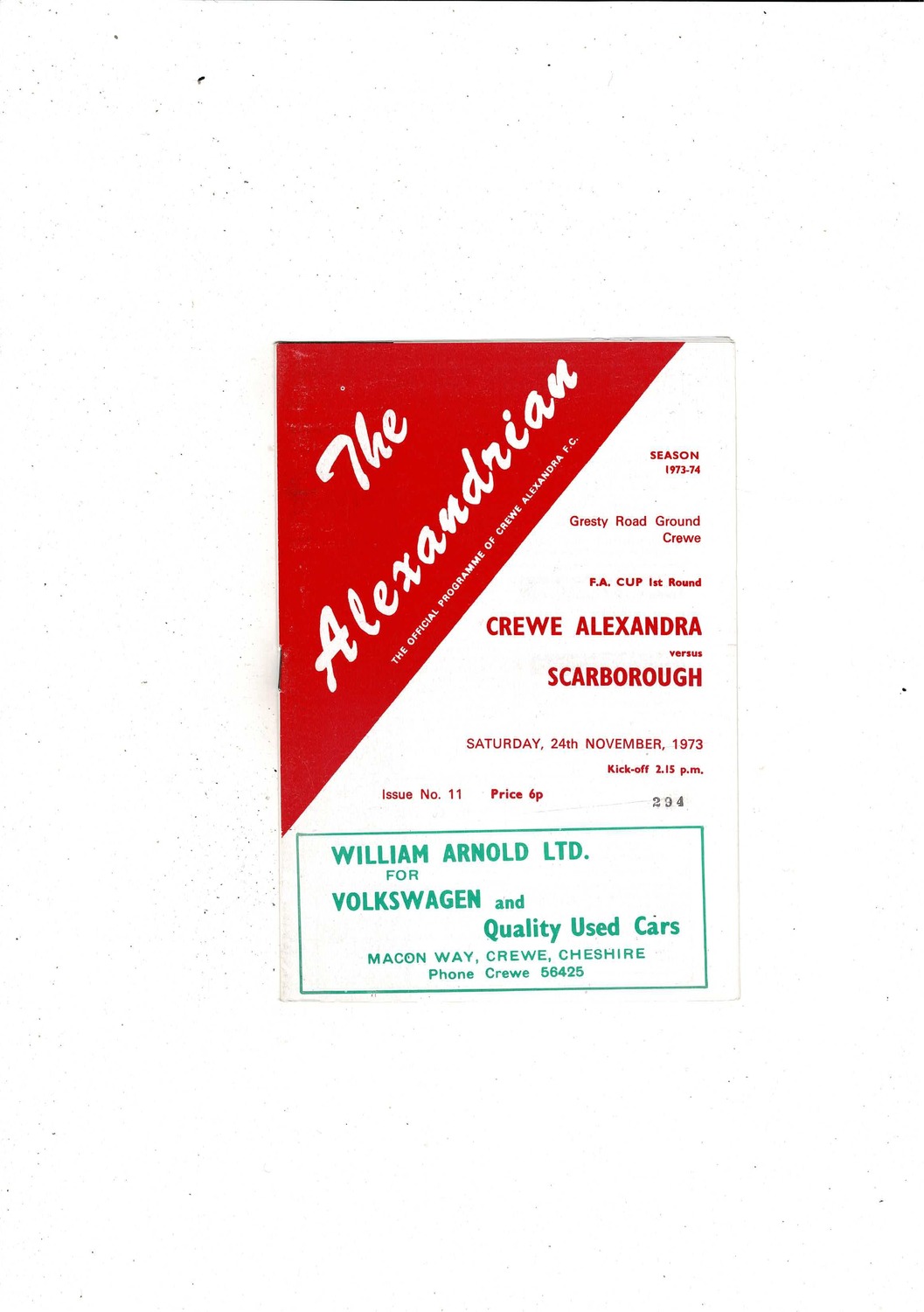 Crewe Alexandra v Scarborough FA Cup Football Programme 1973/74