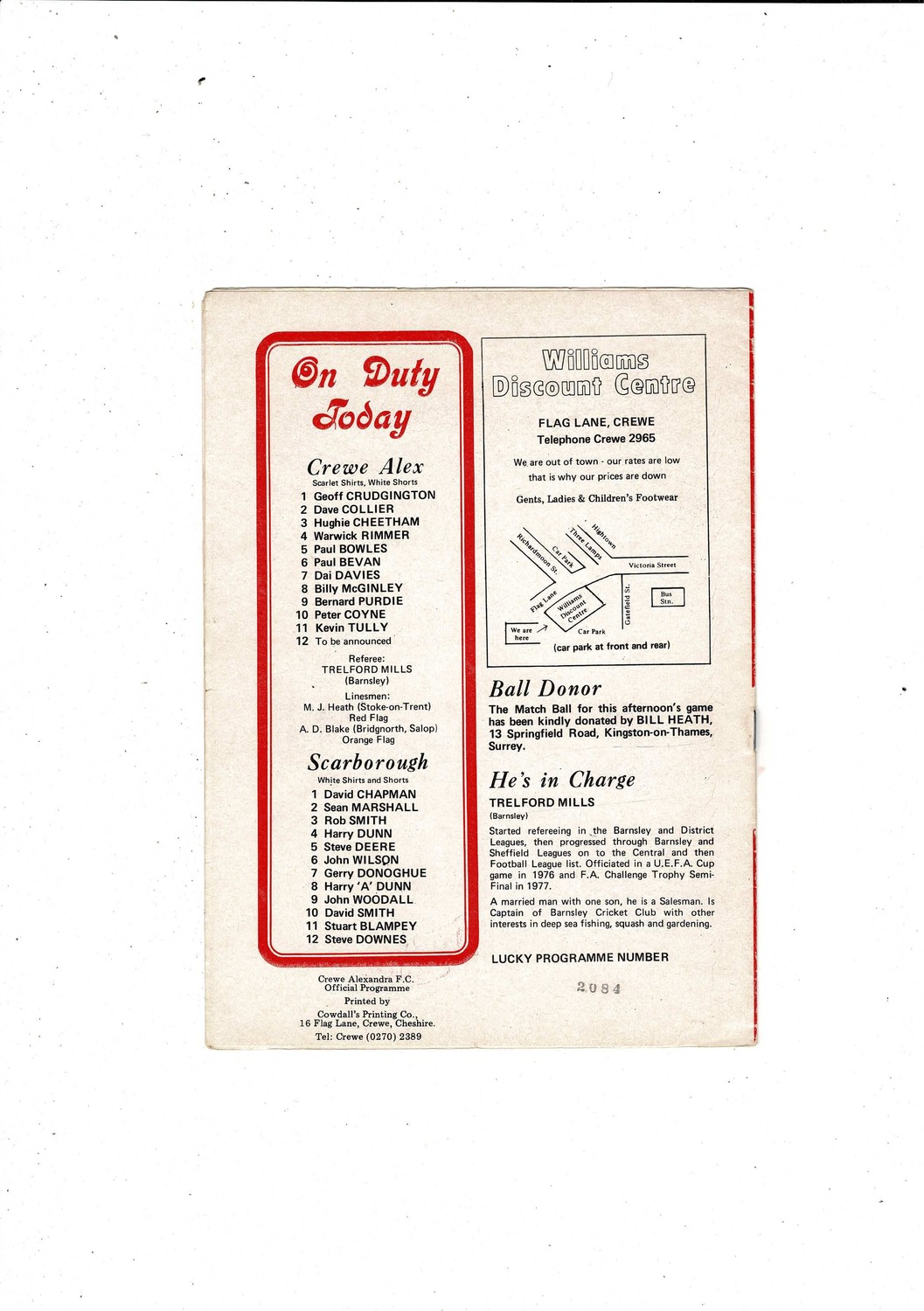 Crewe Alexandra v Scarborough FA Cup Football Programme 1977/78