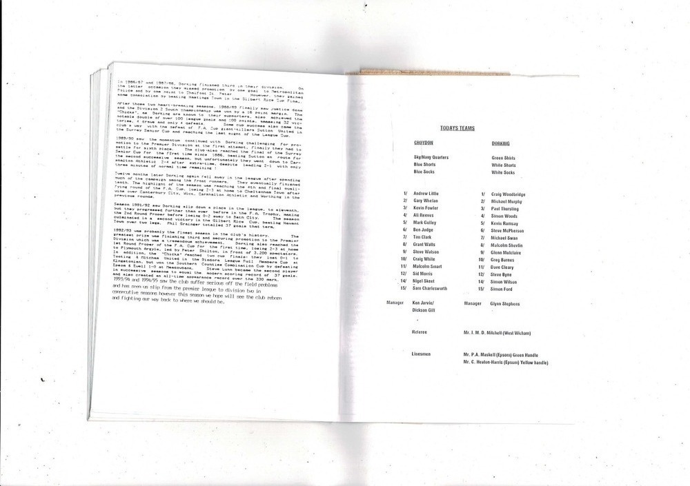 Croydon v Dorking FA Cup Football Programme 1995/96