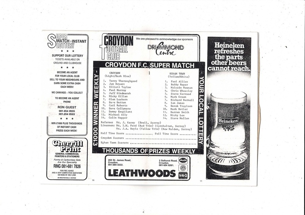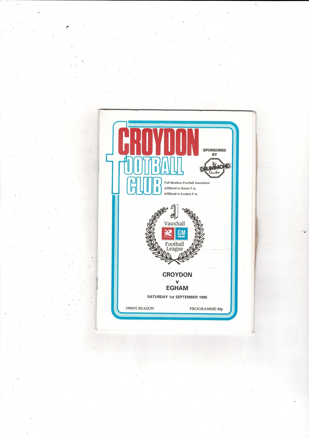 Croydon v Egham FA Cup Football Programme 1990/91 + Press cutting