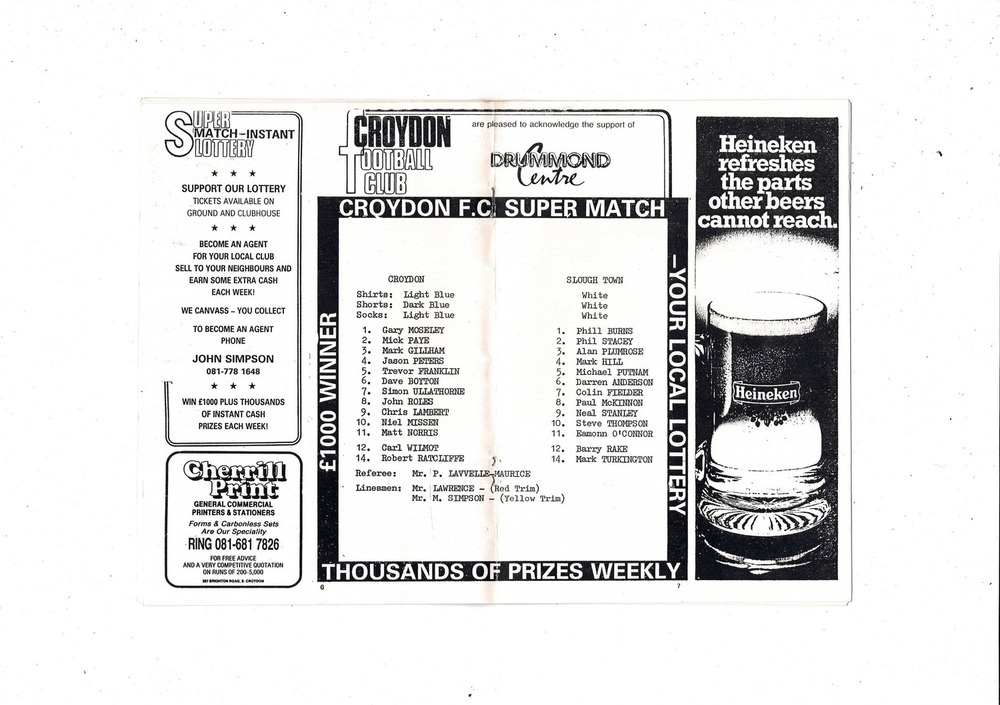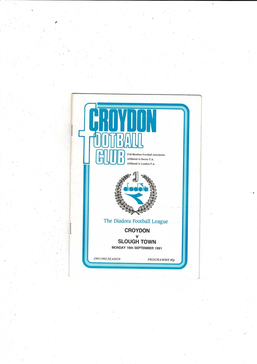 Croydon v Slough Town FA Cup Football Programme 1991/92