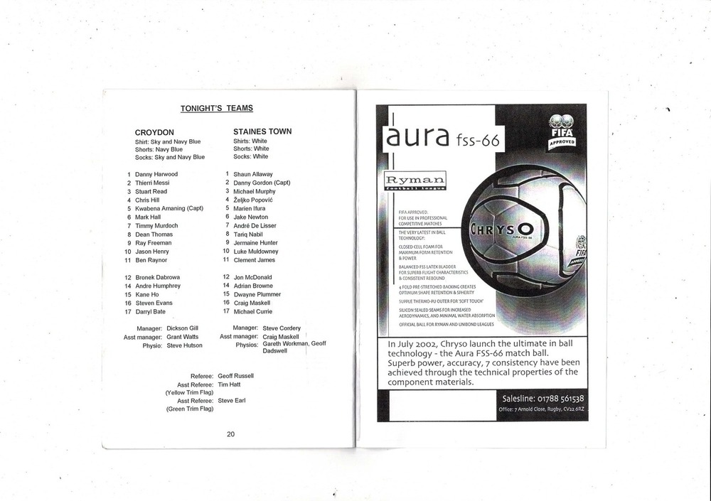 Croydon v Staines Town FA Cup Football Programme + Press cutting 2005/06