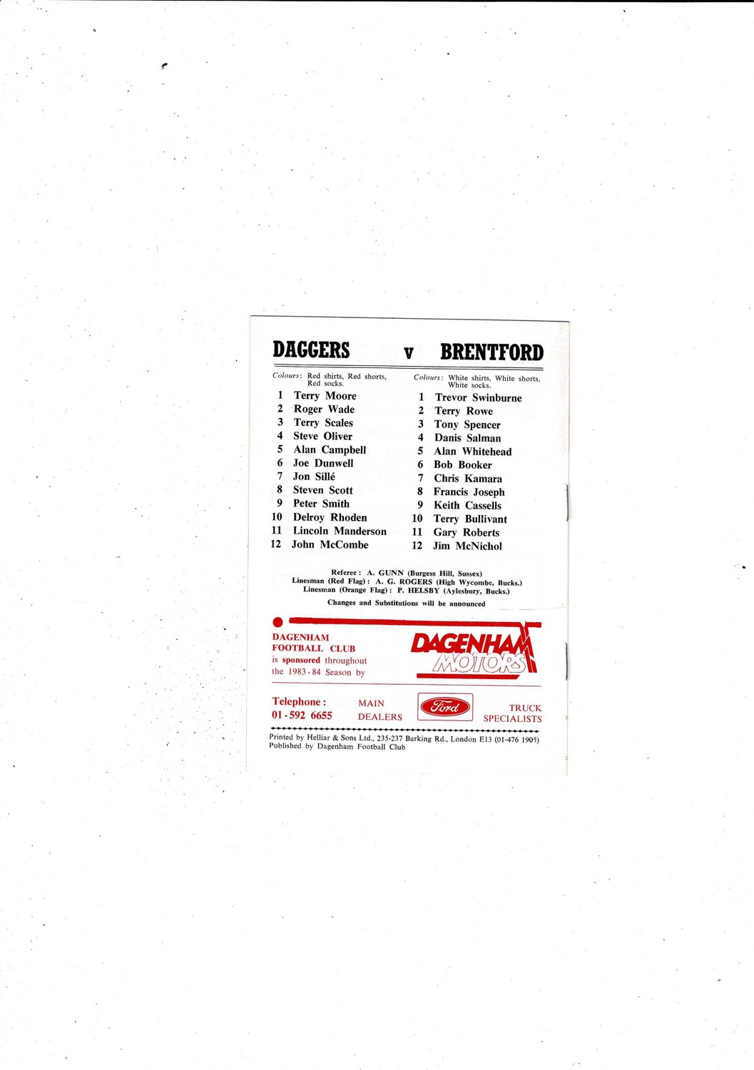 Dagenham v Brentford FA Cup Football Programme 1983/84