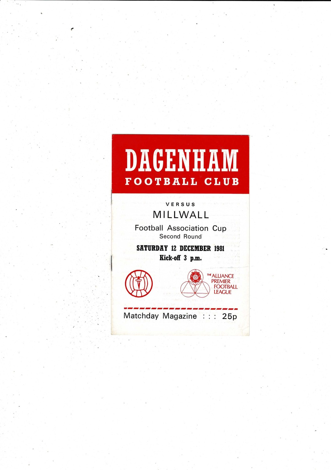 Dagenham v Millwall FA Cup Football Programme 1981/82