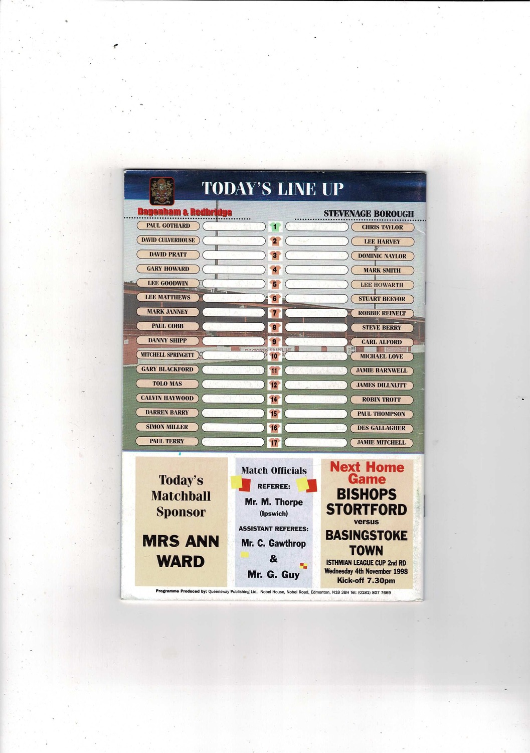 Dagenham v Stevenage Borough FA Cup Football Programme 1998/99