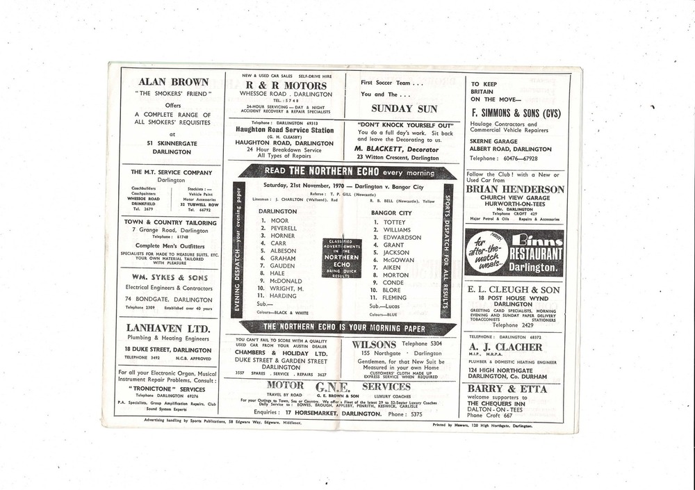Darlington v Bangor City FA Cup Football Programme 1970/71