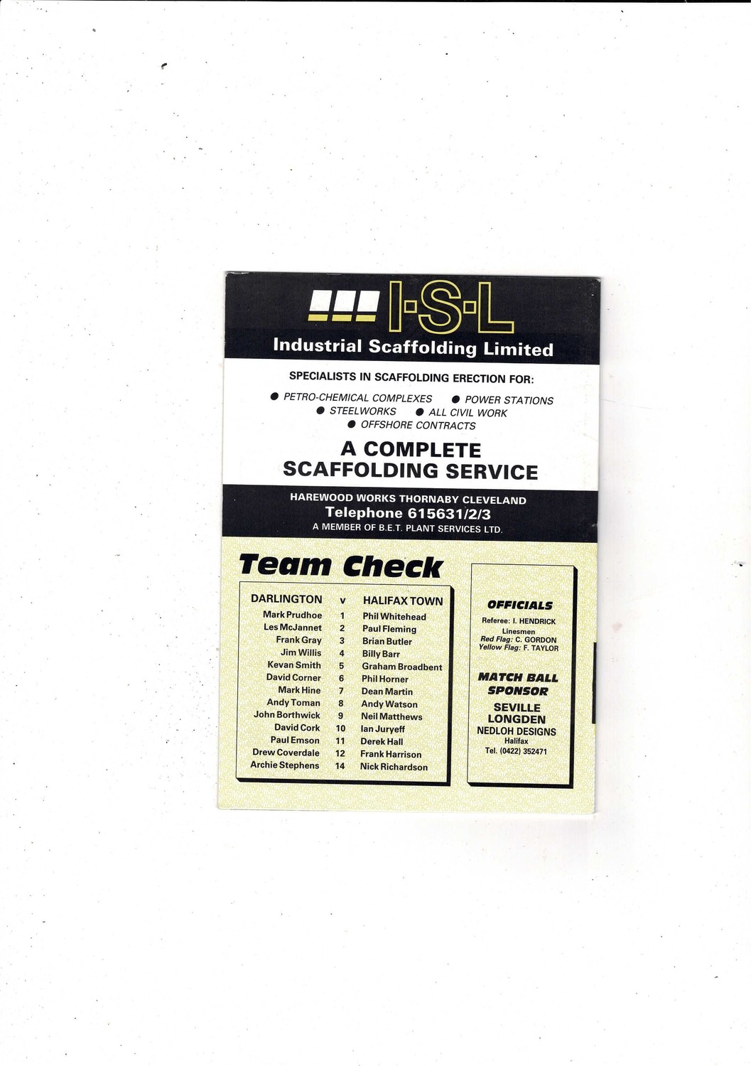 Darlington v Halifax Town FA Cup Football Programme 1989/90