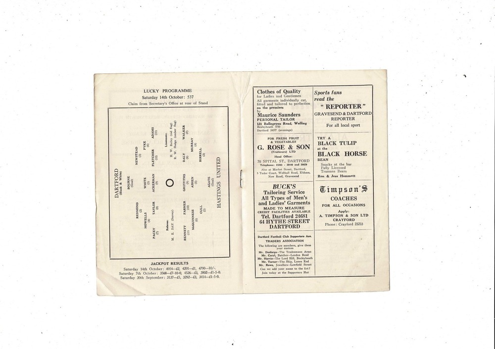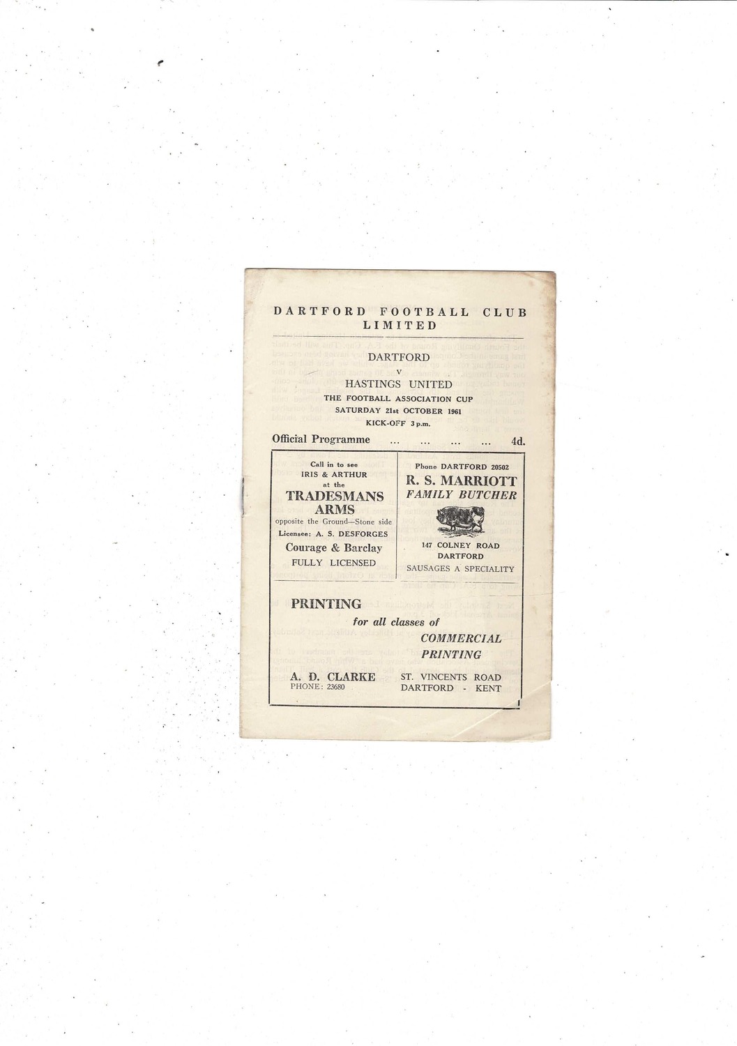 Dartford v Hastings United FA Cup Football Programme 1961/62