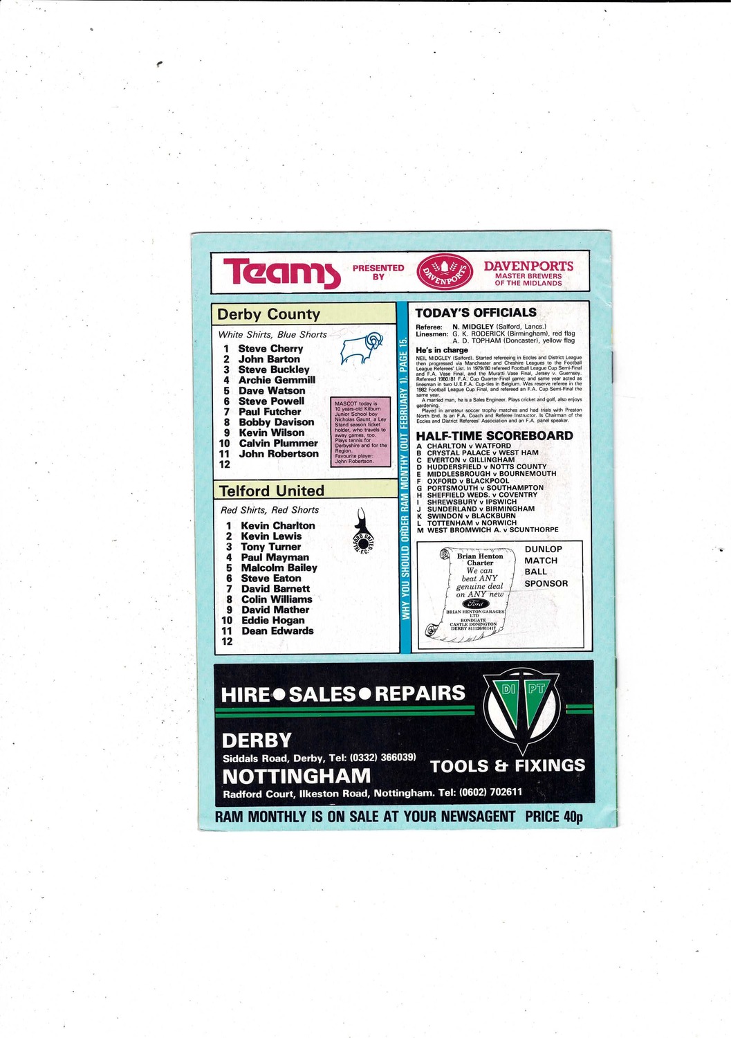 Derby County v Telford United FA Cup Football Programme 1983/84