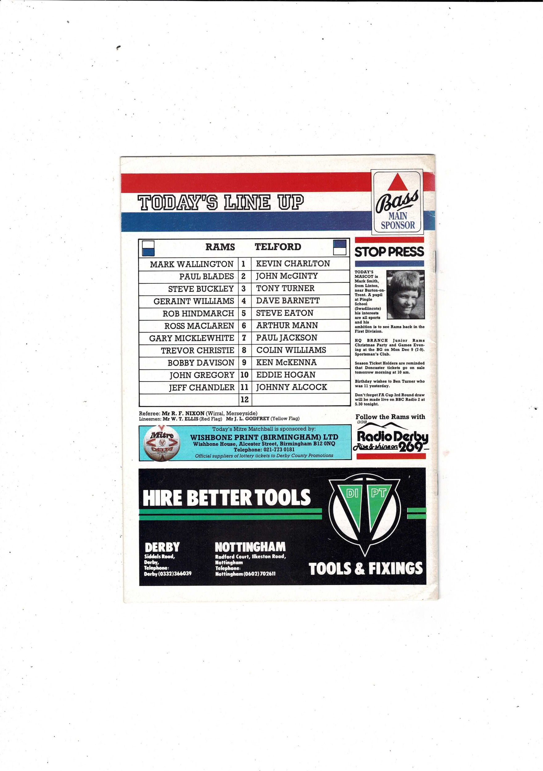 Derby County v Telford United FA Cup Football Programme 1985/86
