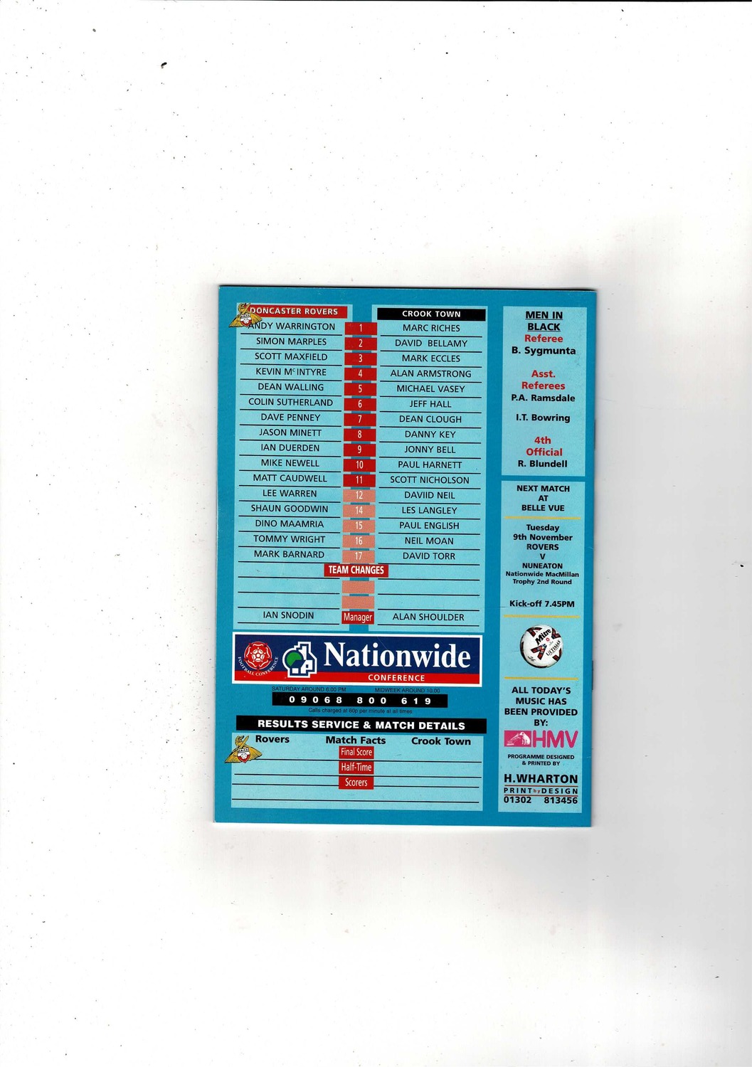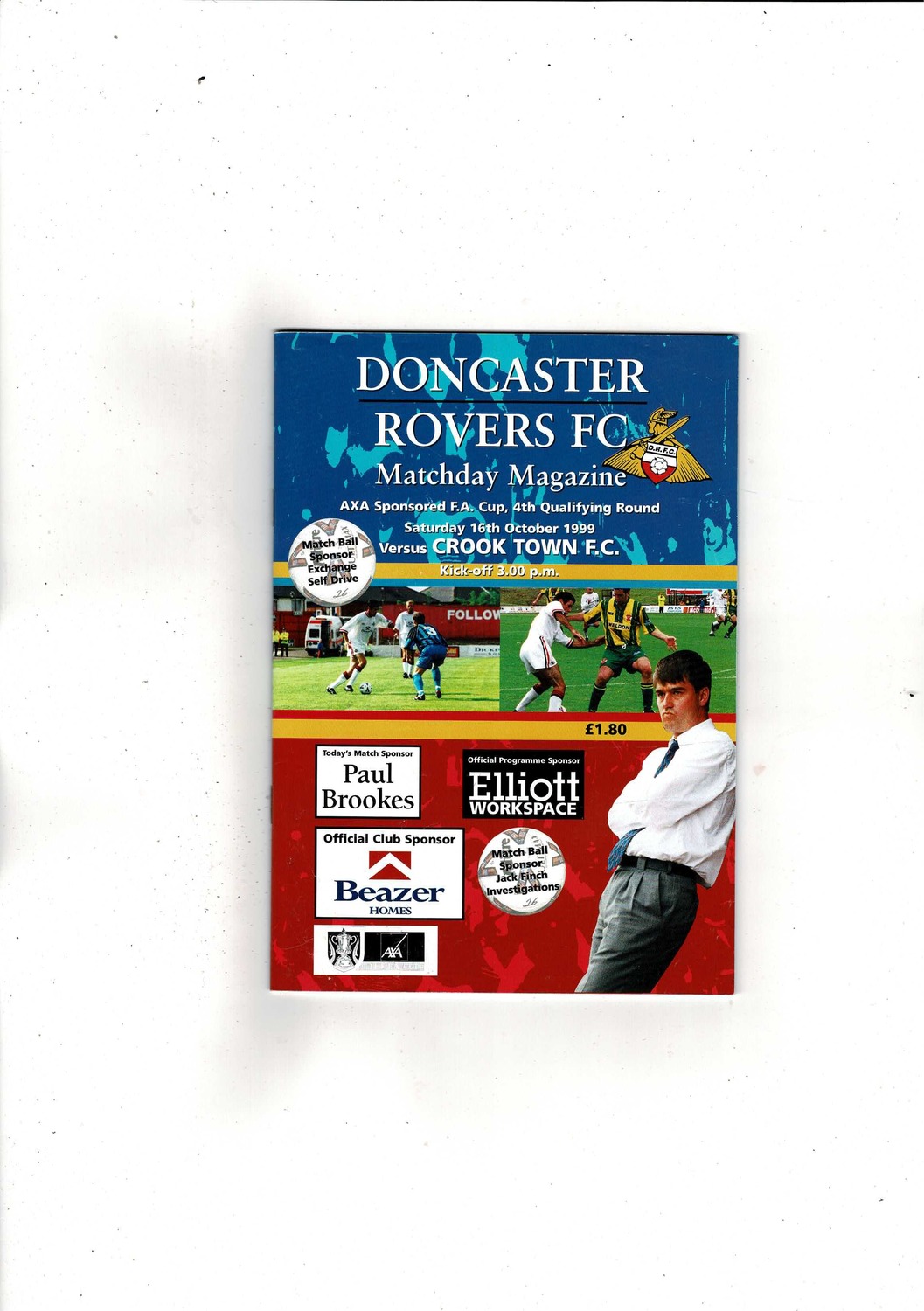Doncaster Rovers v Crook Town FA Cup Football Programme 1999/00