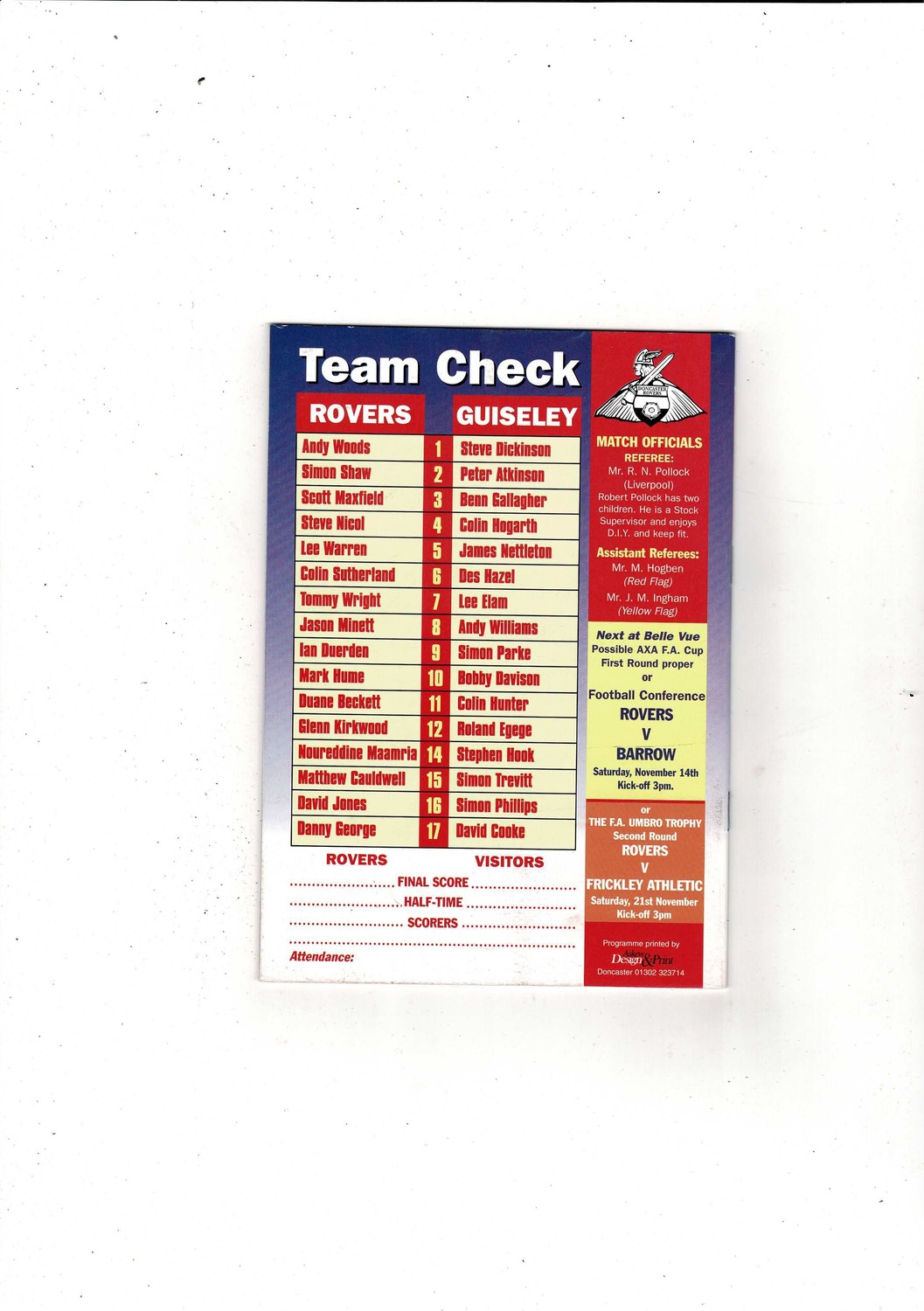 Doncaster Rovers v Guiseley FA Cup Football Programme 1998/99