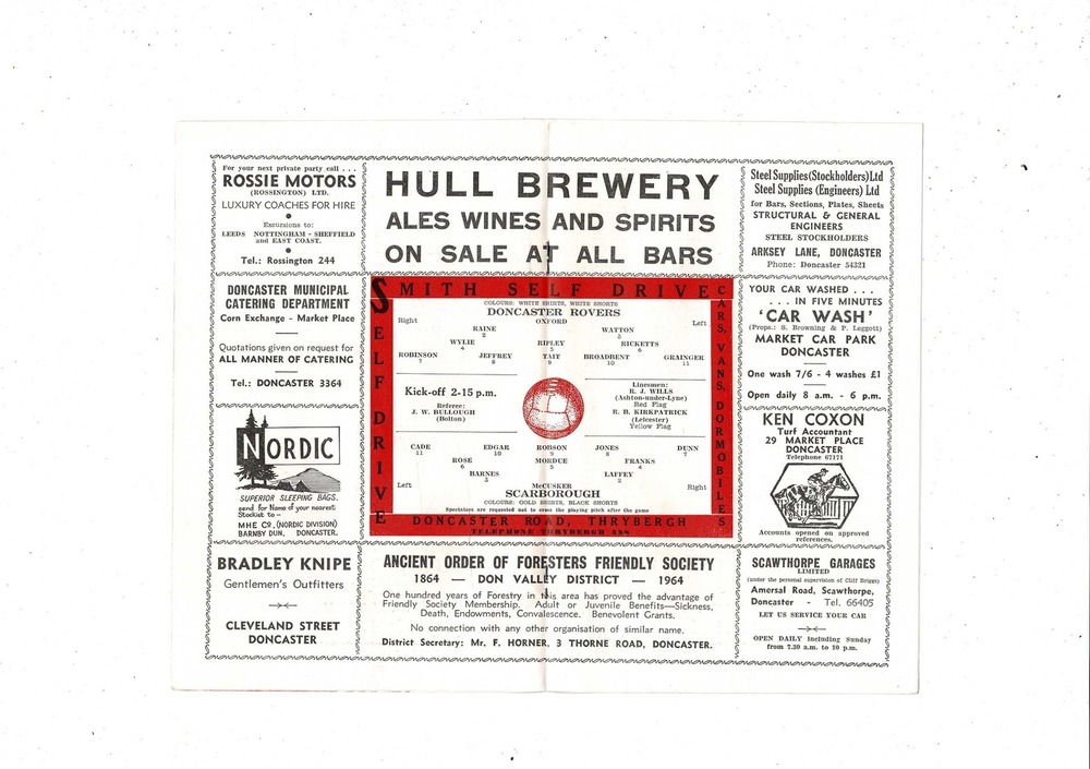 Doncaster Rovers v Scarborough FA Cup Football Programme 1964/65