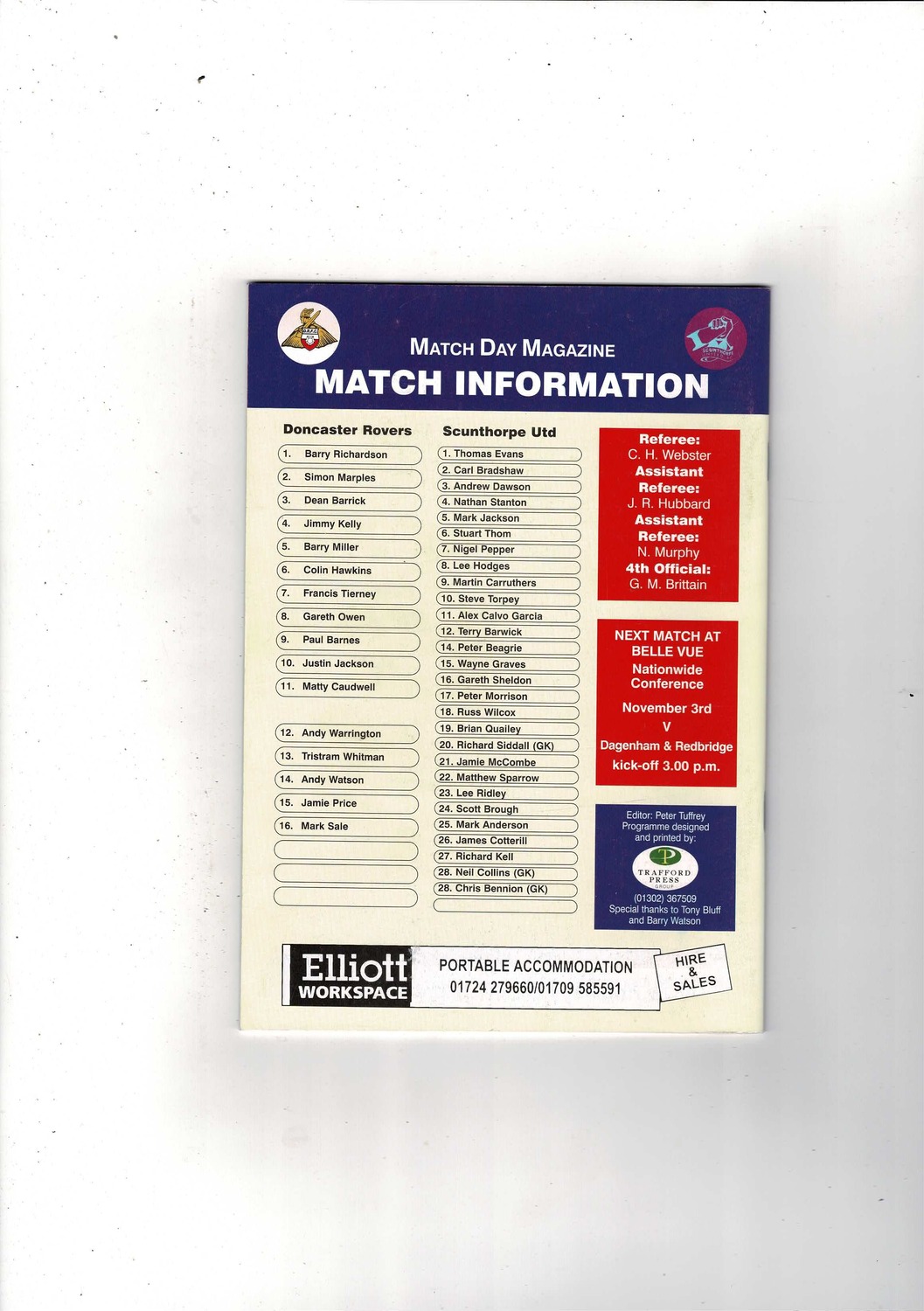 Doncaster Rovers v Scunthorpe United FA Cup Football Programme 2001/02