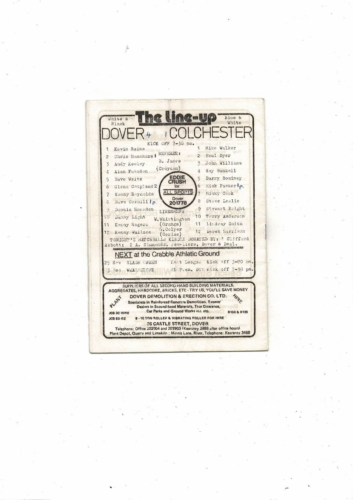 Dover v Colchester United FA Cup Replay Football Programme 1975/76