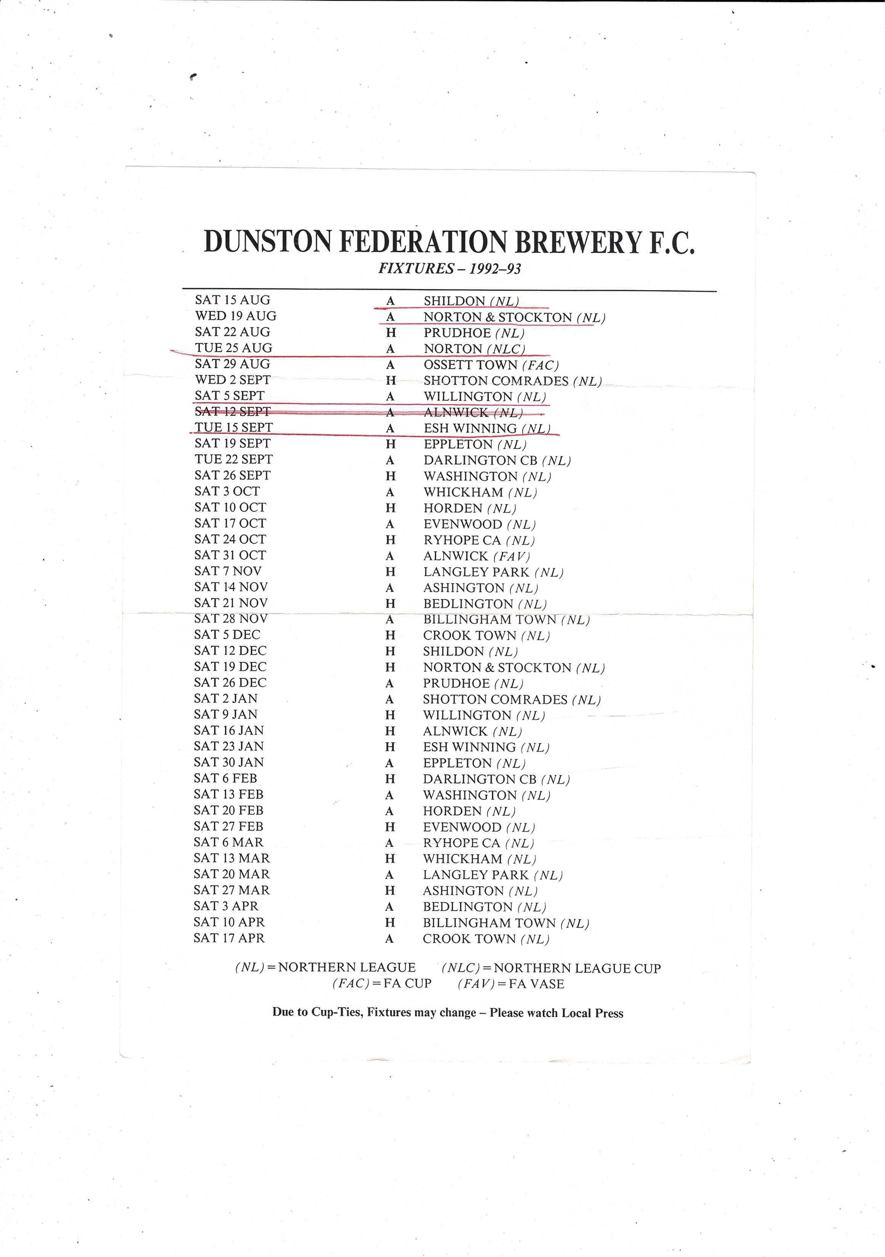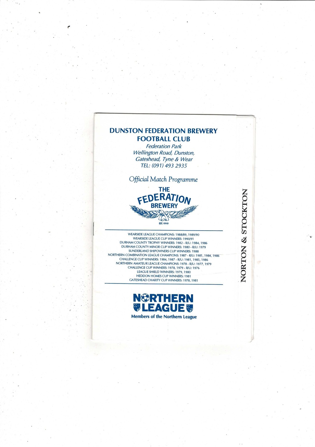 Dunston Federation Brewery v Norton & Stockton Ancients FA Cup Football Programme 1992/93