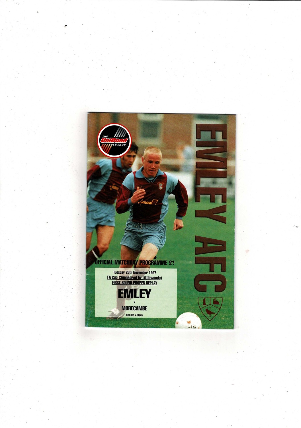 Emley v Morecombe FA Cup Replay Football Programme 1997/98