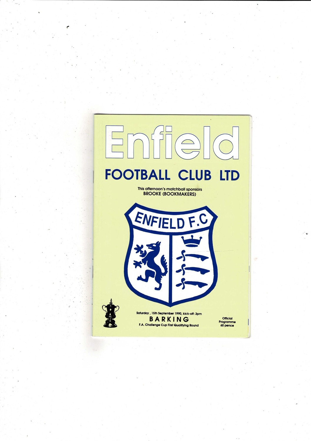 Enfield v Barking FA Cup Football Programme 1990/91